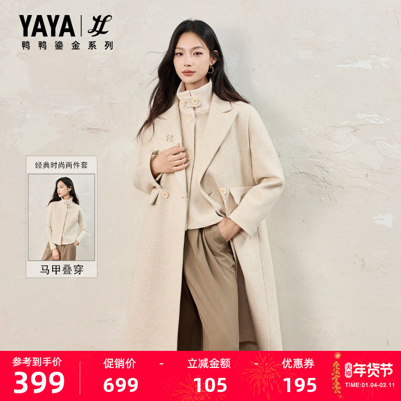 📚 【鎏金系列】鸭鸭2025年冬季新款中长款两件套米白色大衣羽绒服M