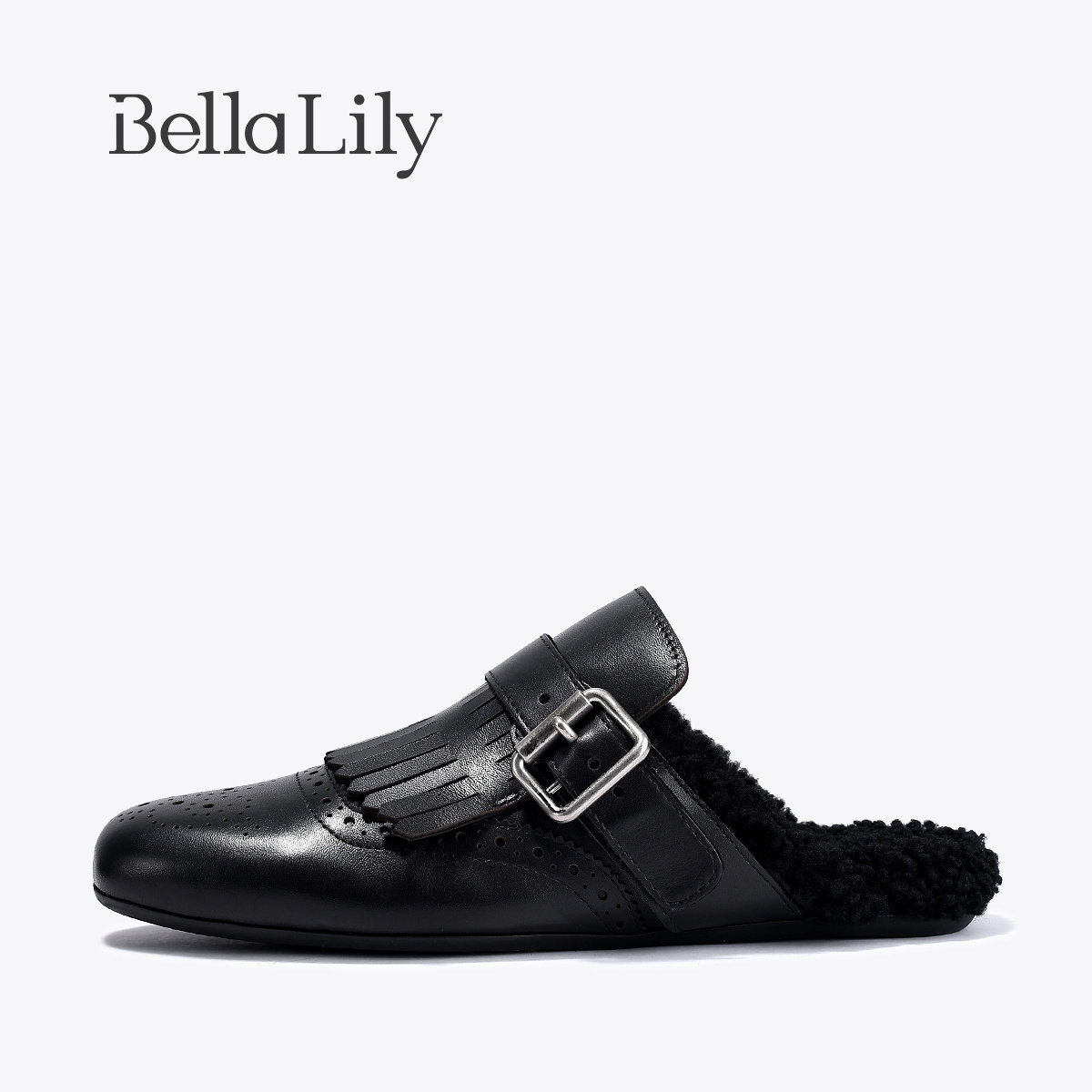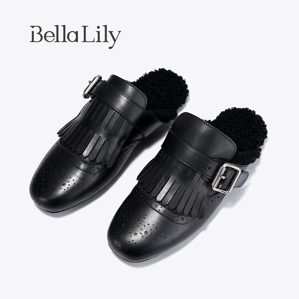 📚 BellaLily2025冬季新款布洛克流苏勃肯拖鞋保暖毛毛鞋舒适一脚蹬