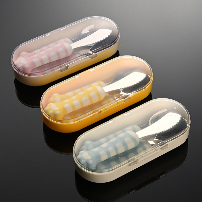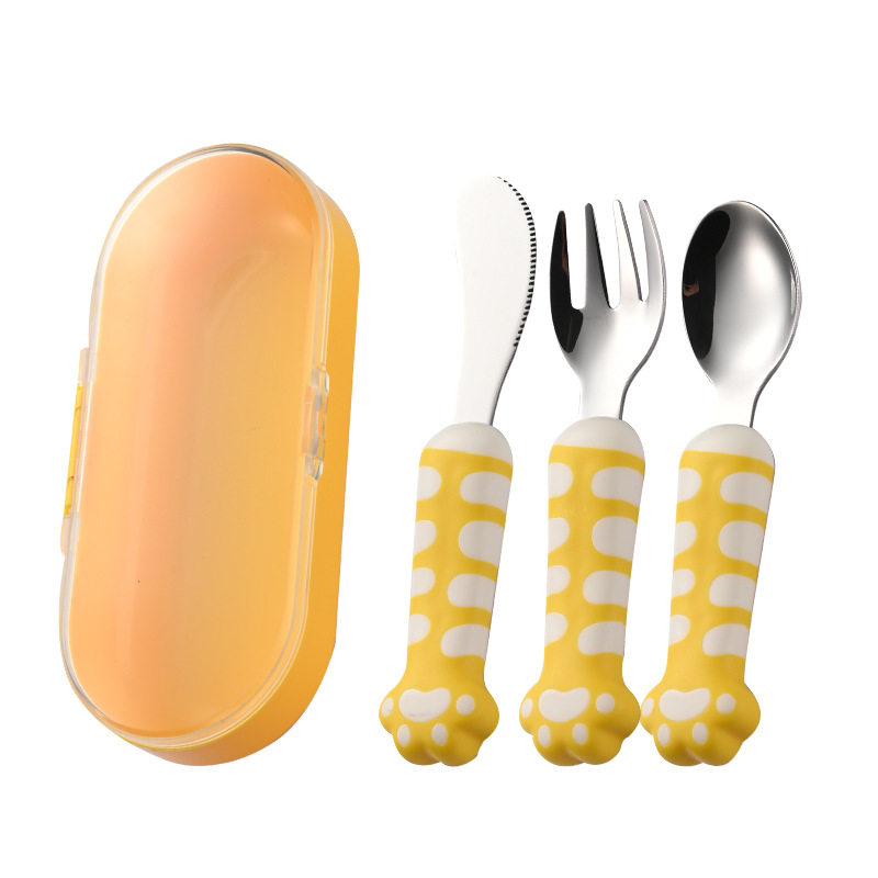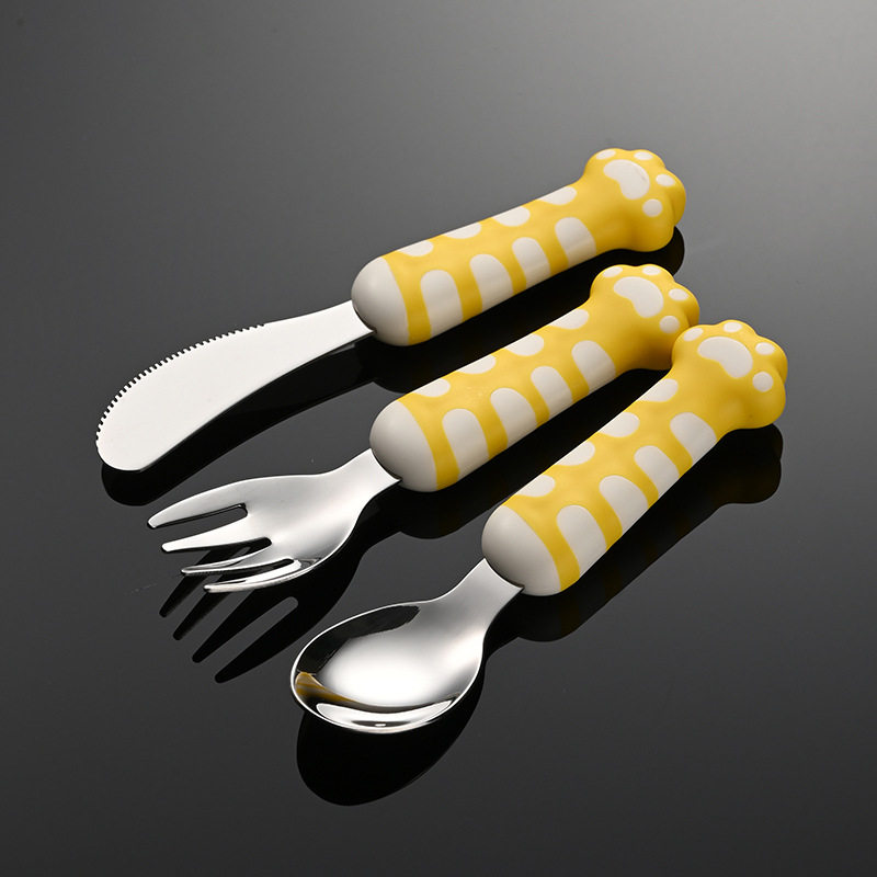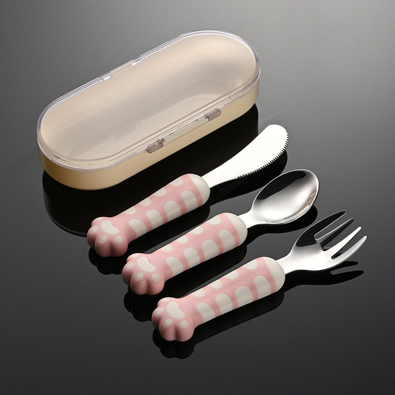 📚 埃恩猫爪儿童餐具304不锈钢刀叉勺宝宝自主进食训练勺便携餐具