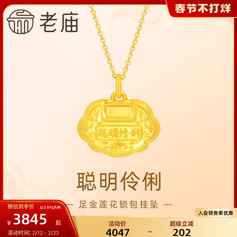 📚 老庙黄金足金999聪明伶俐莲花锁包挂坠吊坠平安健康成长宝宝