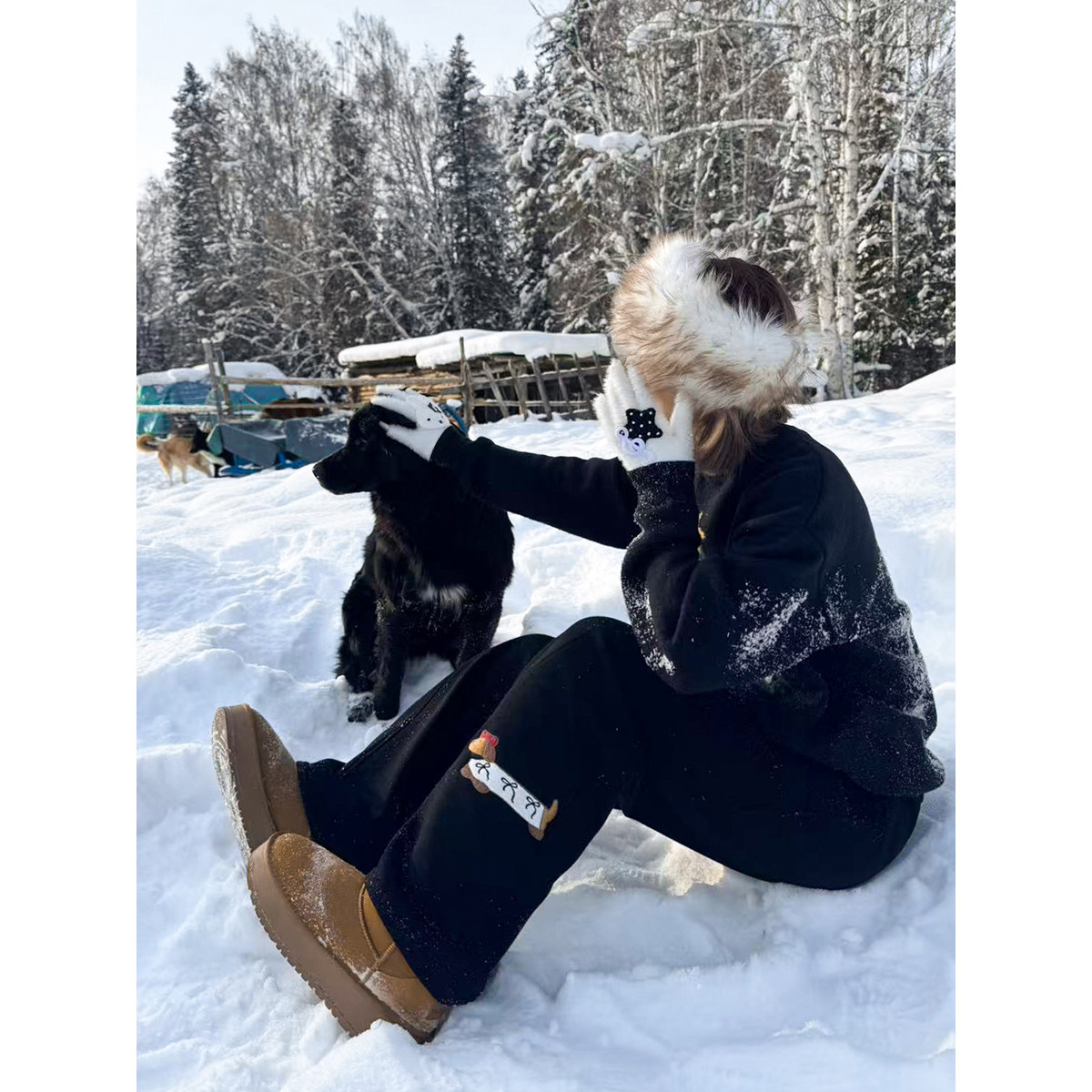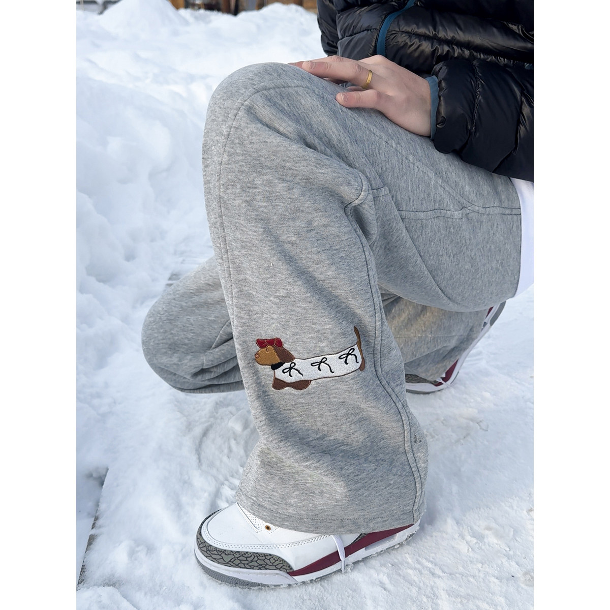 📚 YORKZOOM秋冬新款美式小狗刺绣弯刀卫裤长裤男情侣加绒加厚百搭