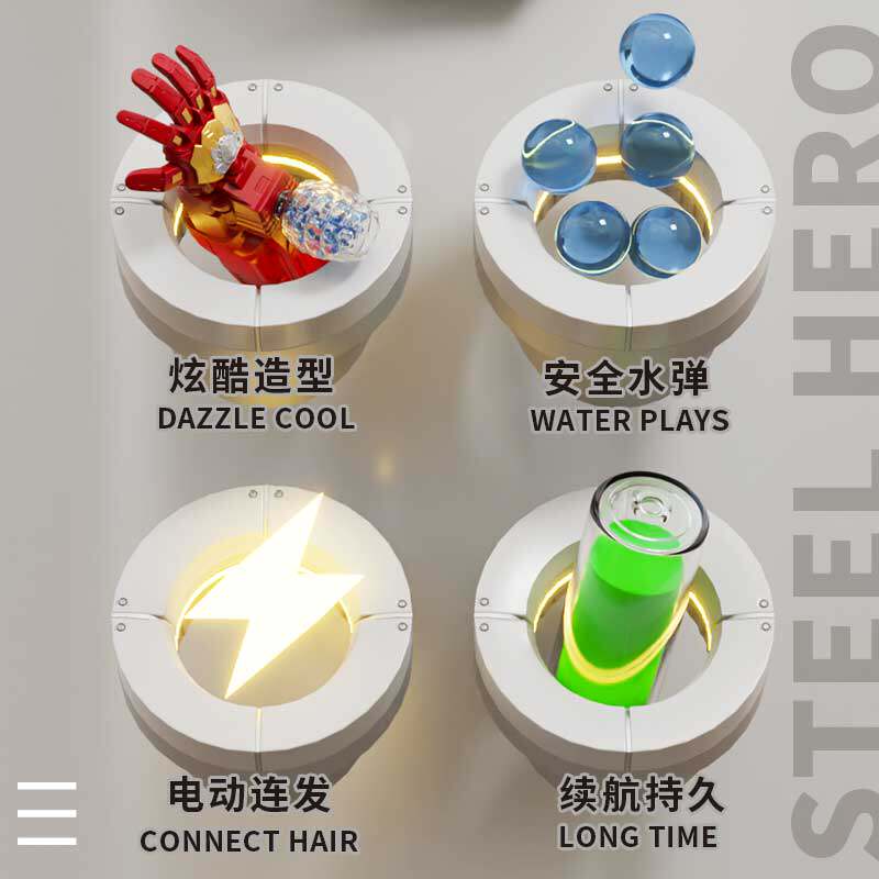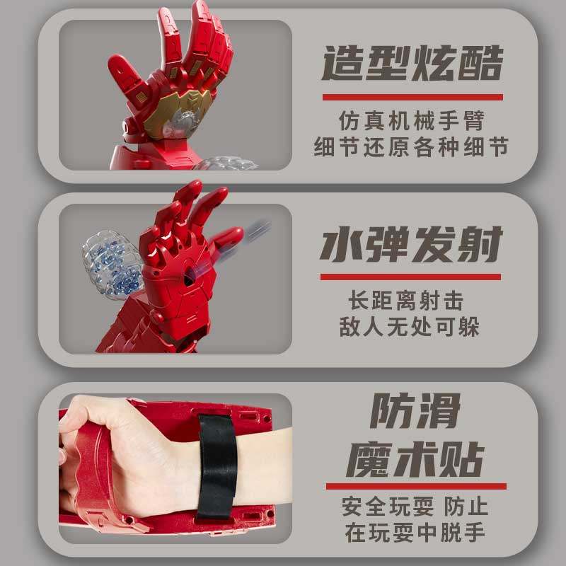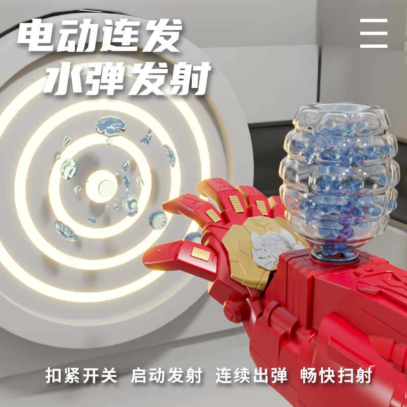 📚 钢铁机械手臂电动连发水晶儿童男孩可穿戴防滑水晶弹发射器玩具侠