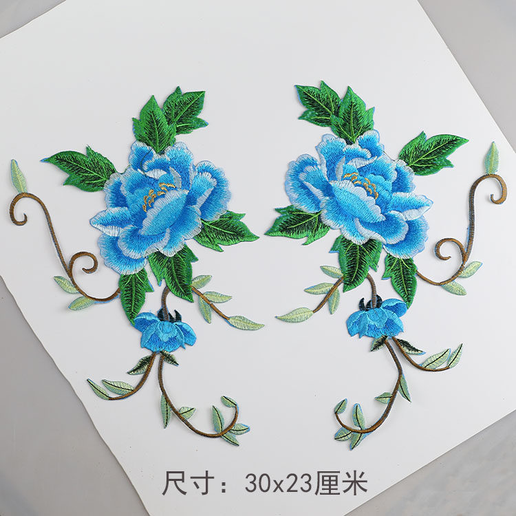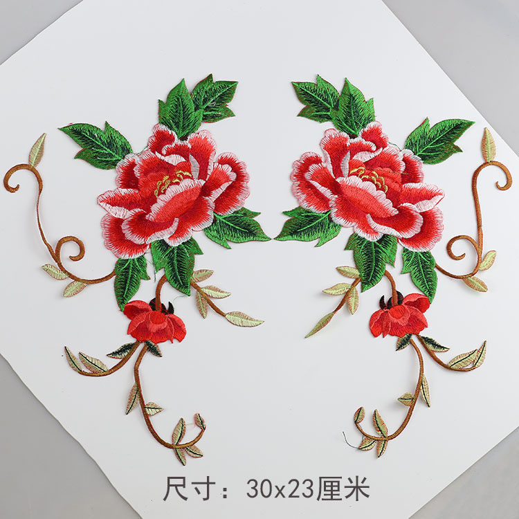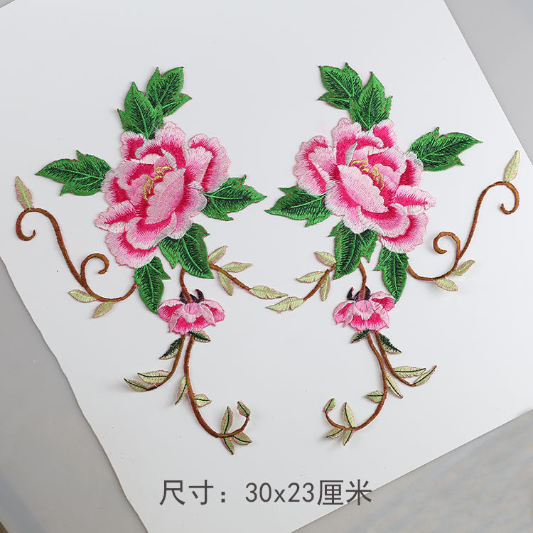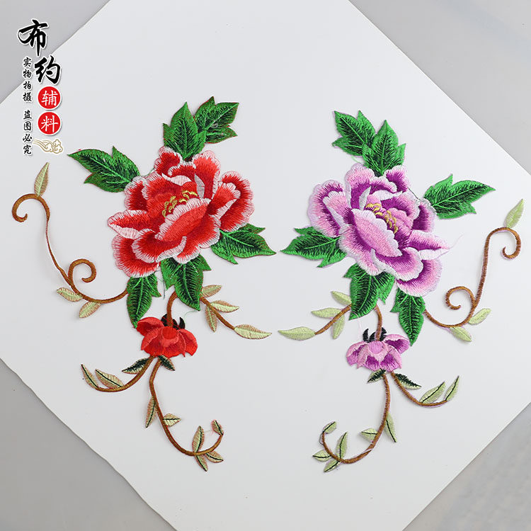 📚 对称中国风牡丹刺绣布贴大号对花演出服民族服舞蹈服烫花绣片新款