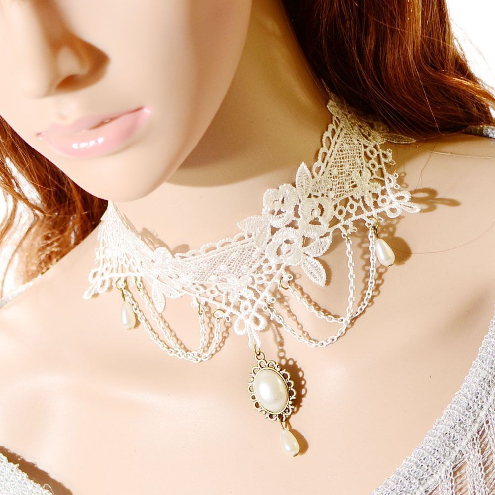 📚 五一价婚纱礼服女短款锁骨遮纹白色蕾丝颈带choker项圈颈圈百搭