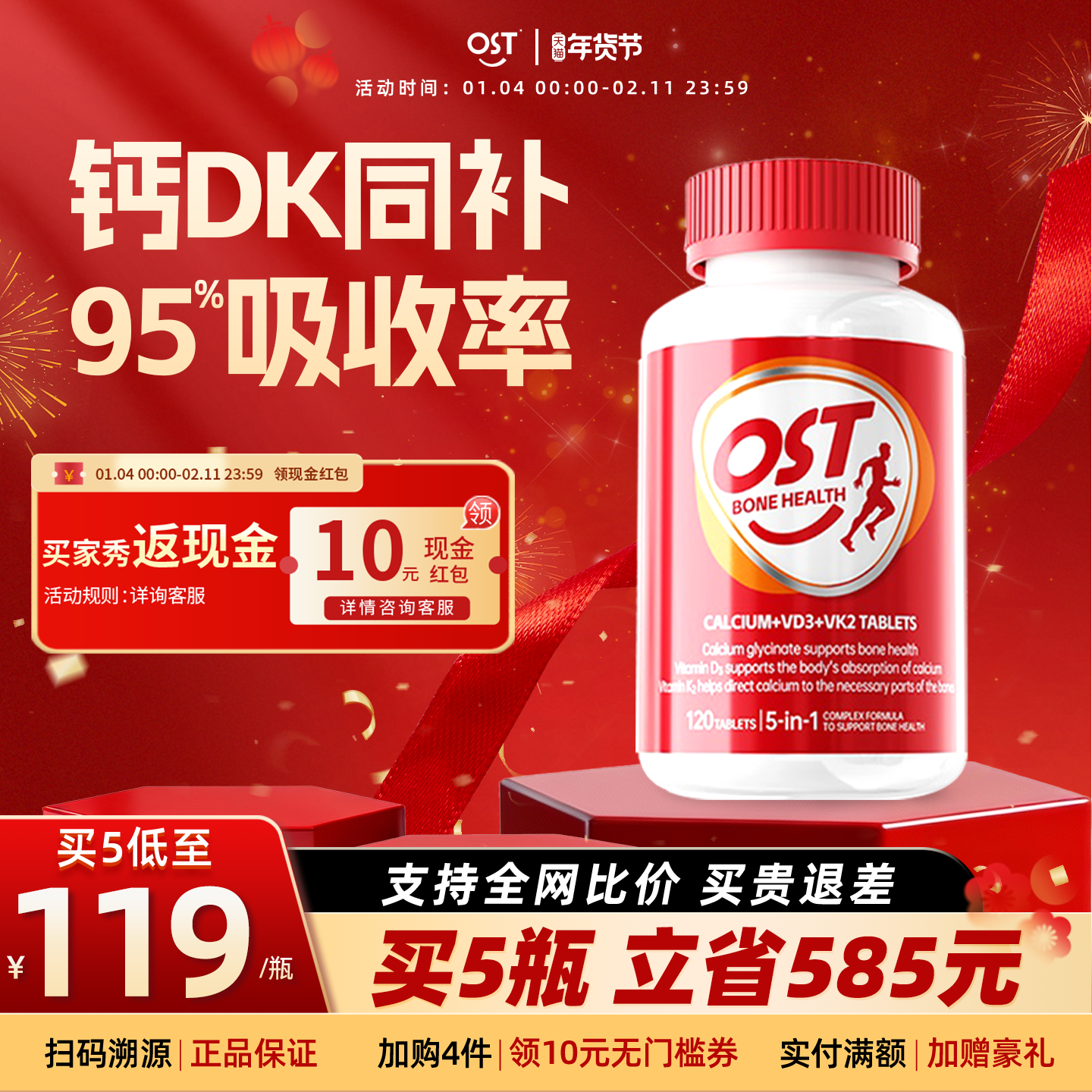 📚 OST乐力氨基酸螯合钙D3K2片儿童女性中老年补钙强骨维生素钙镁锌