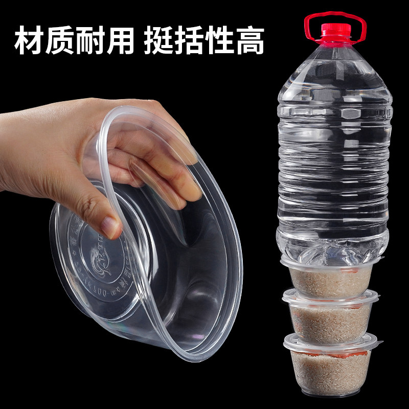🎁这款一次性碗商用圆形透明带盖碗外卖打包粉面粥饭碗酒席专用,真的是一次性的餐具,非常环保。而且它的使用方便快捷,省去了清洗餐具的麻烦。