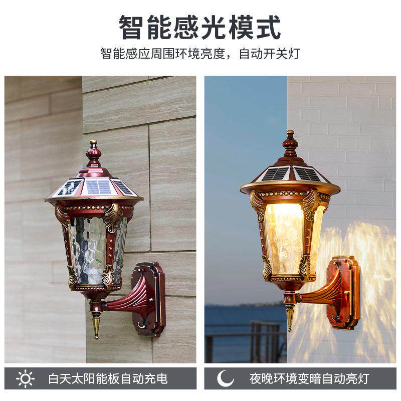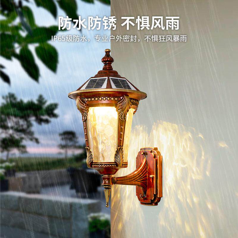 📚 太阳能壁灯户外防水花园露台别墅欧式复古外墙大门柱子两侧庭院灯