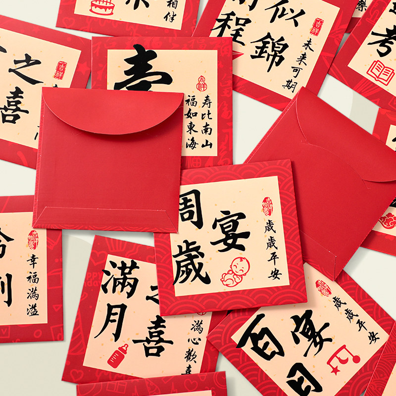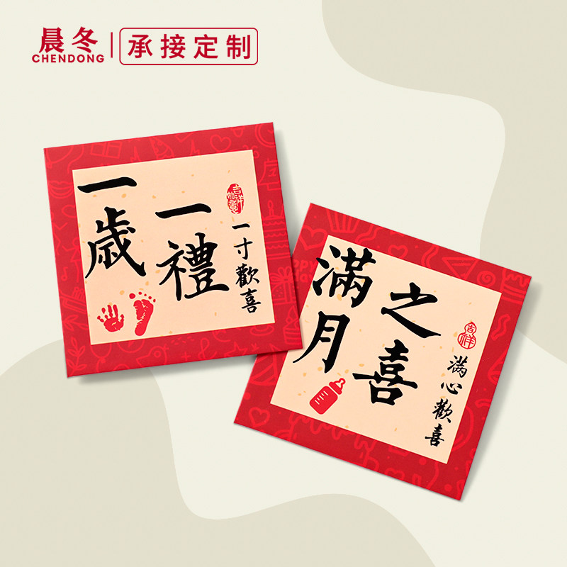 📚 中式书法宝宝满月之喜百日宴周岁生日一岁一礼红包袋回礼小利是封