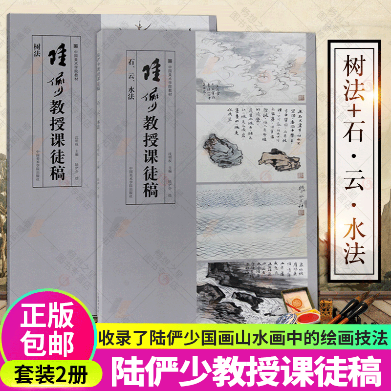 📚 陆俨少教授课徒稿2册 石云水法+树法 中国美术学院教材陆俨少课徒画稿 国画山水画入门临摹稿范本工笔山水画技法教程 陆俨少课徒稿