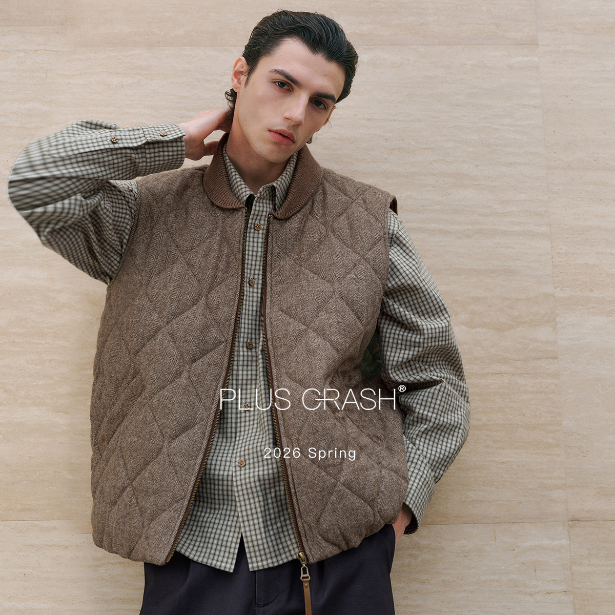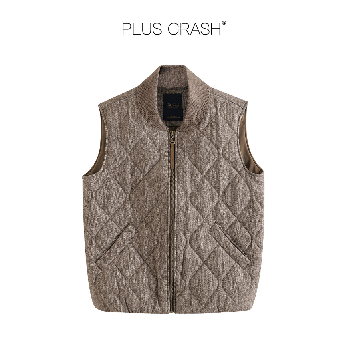 📚 PLUS CRASH冬季新款老钱风绵羊毛加厚菱形棉马甲高级感男装