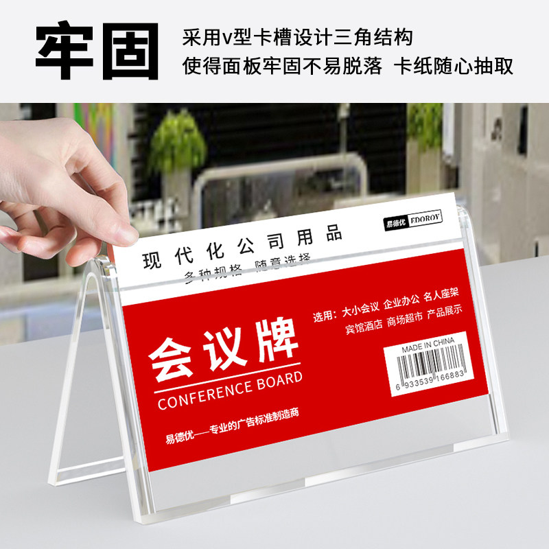 📚 席卡架 会议牌姓名桌摆菜品名牌展示小组组价目表小摆台桌面立式名字台卡产品介绍人双面三角桌牌立牌位定制