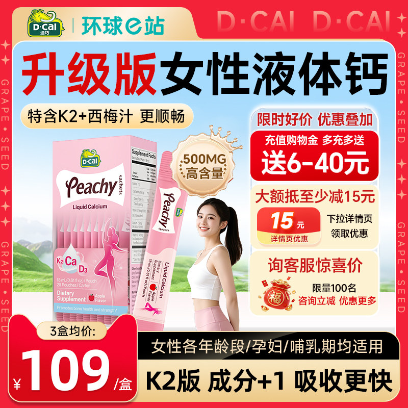 📚 钙片女性补钙成年d3k2液体钙改善柠檬酸钙孕期进口女士迪巧小粉条