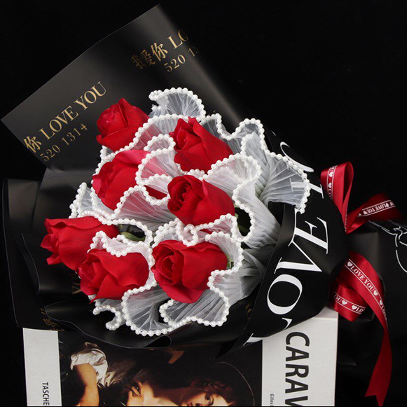 📚 珍珠波浪纱包花网纱手工玫瑰花束包装浪花纱鲜花韩式白纱围边纸