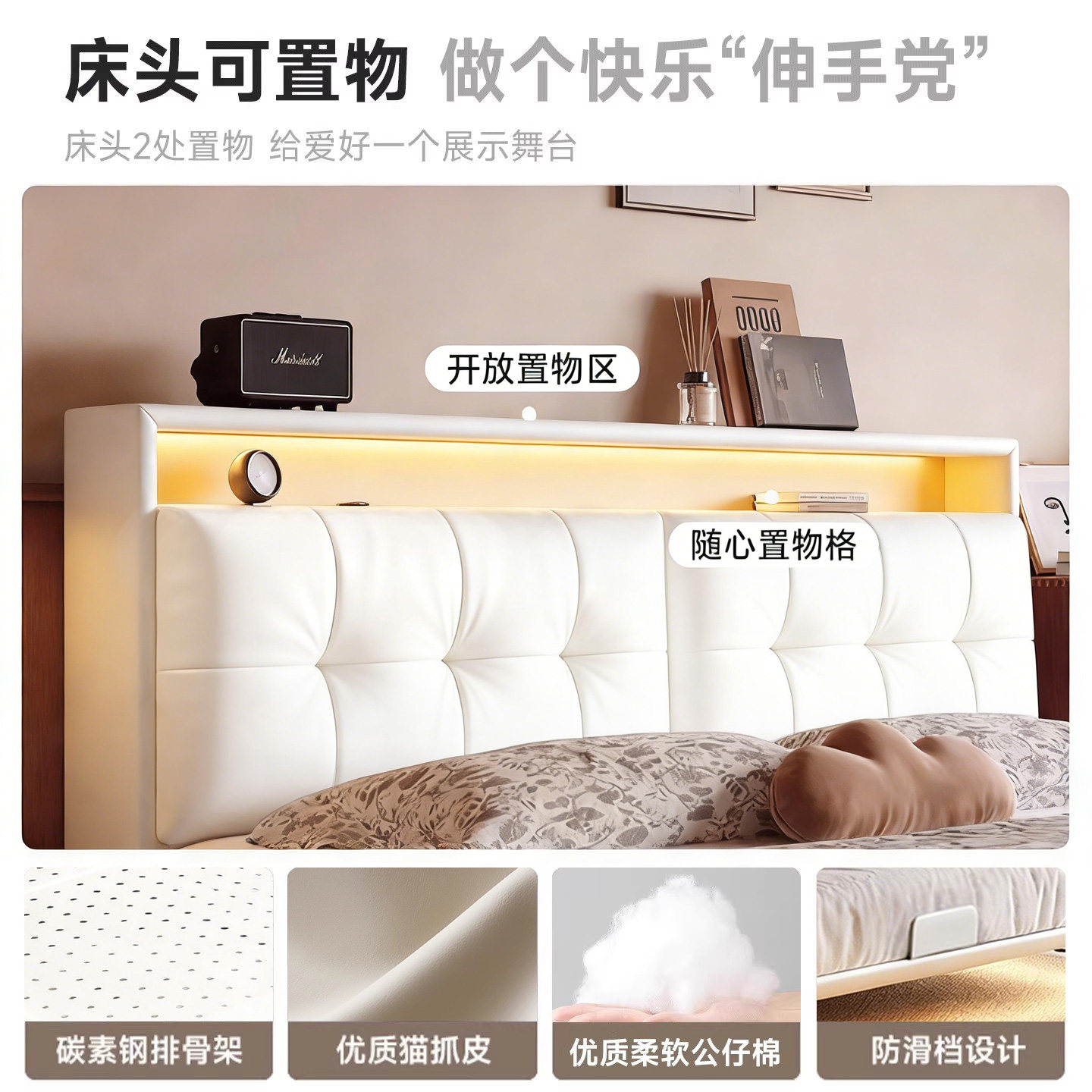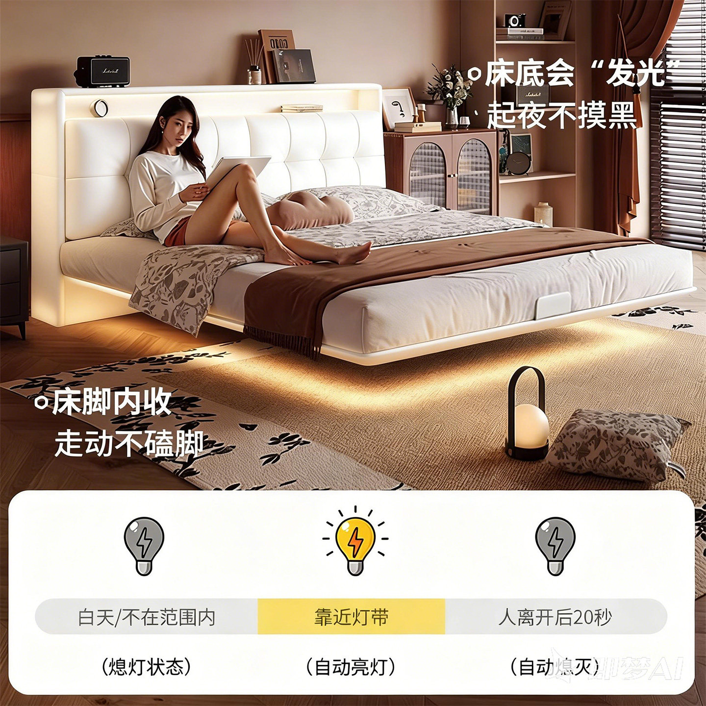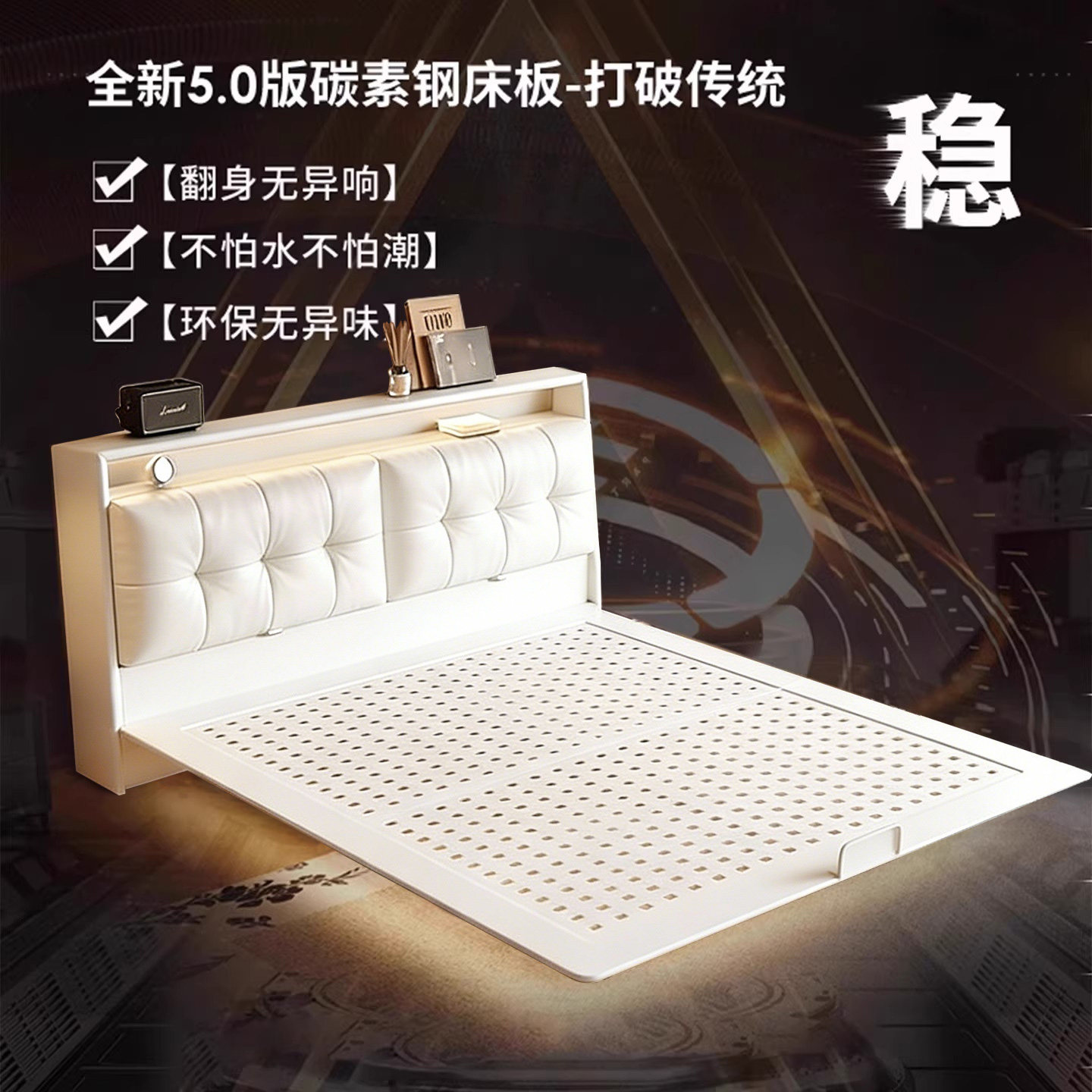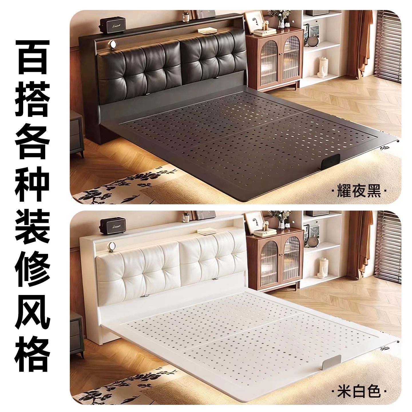 📚 铁艺悬浮床加厚碳素钢床架意式轻奢主卧软包床头洞洞板双人储物床