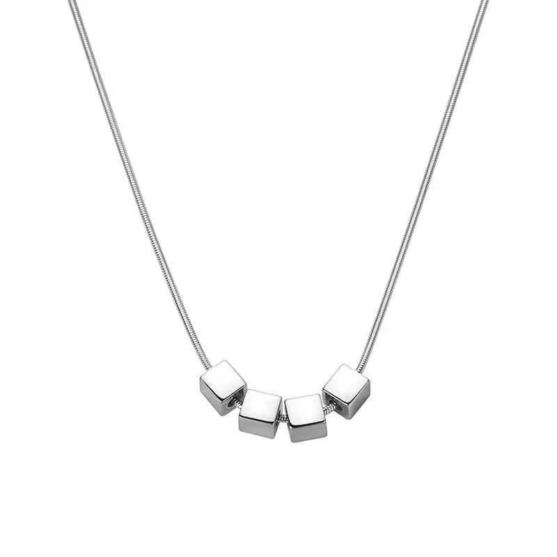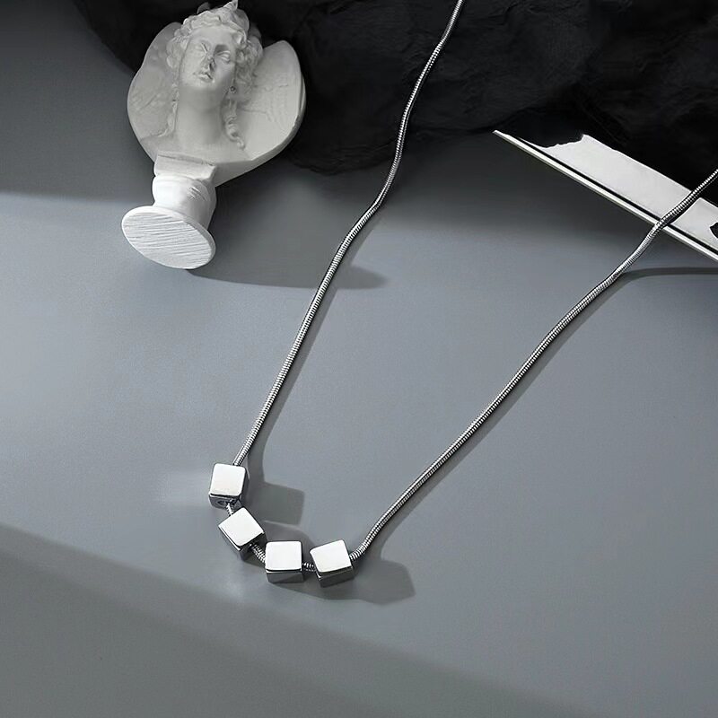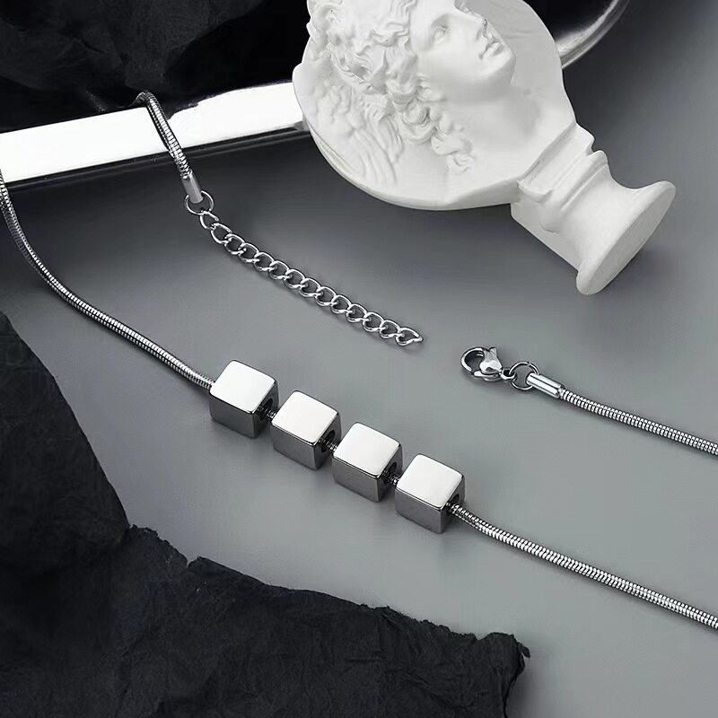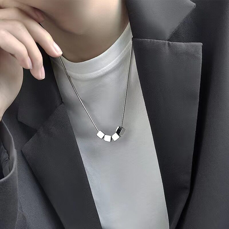 📚 男潮韩版项链简约个性钛钢吊坠小众设计几何方糖锁骨链挂饰
