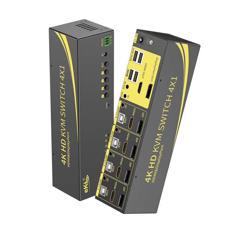 📚 eKL-41DH 4K高清DP/HDMI双通道KVM切换器四进二出 双屏扩展4进2出 USB自动切换电脑二路显示器鼠键共享器配线