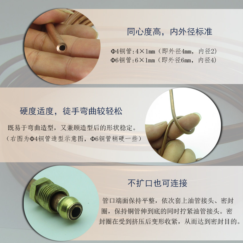 📚 外径4mm/6mm软态纯铜易弯空心T2紫铜油管加厚高压机床润滑油铜管