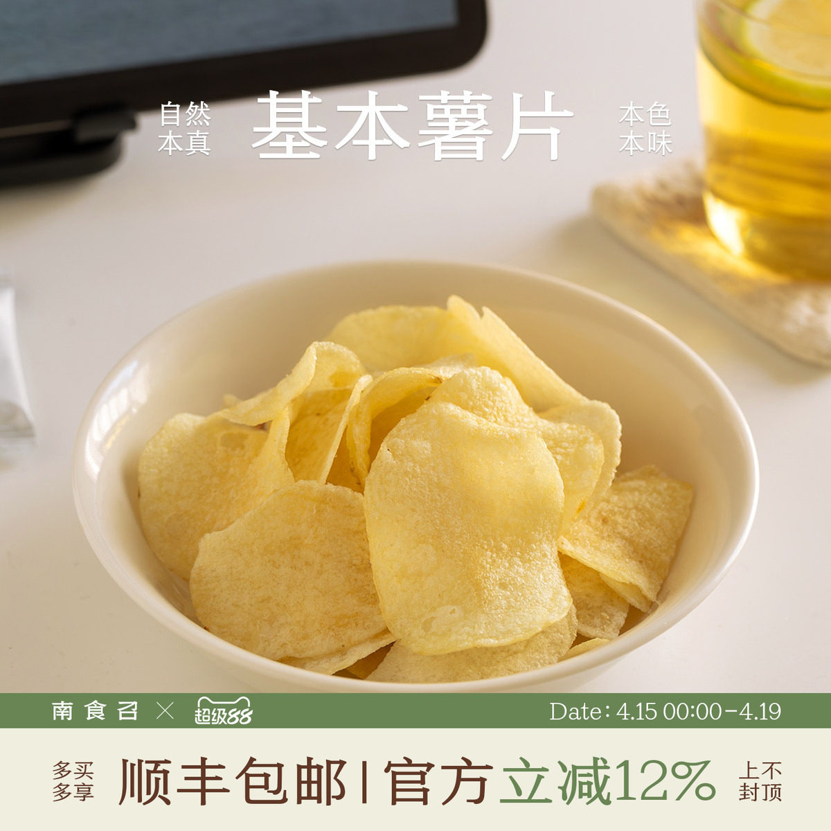 📚 南食召 基本薯片 克制用盐·简单配料 原切薯片休闲零食小吃