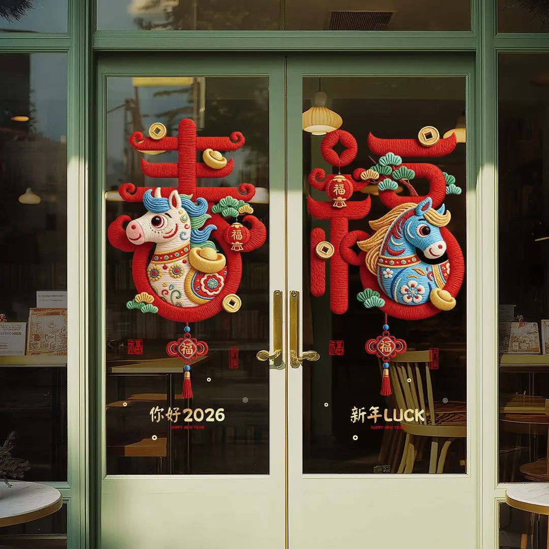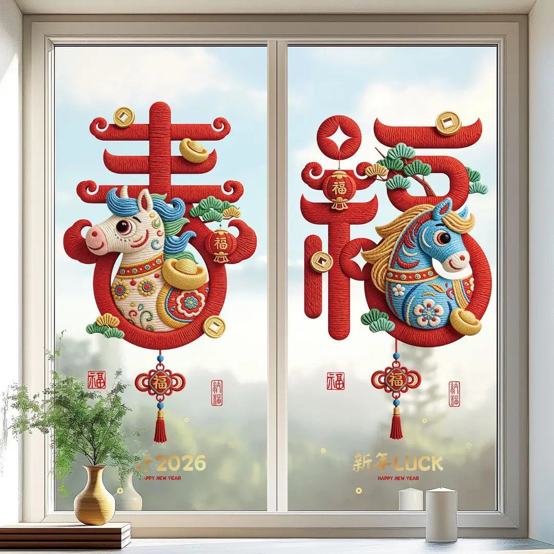 📚 【裸眼5D】马年静电窗花贴2026新年快乐装饰橱窗玻璃装饰窗花w