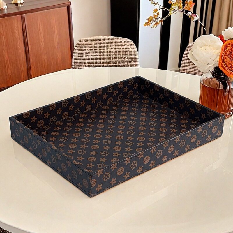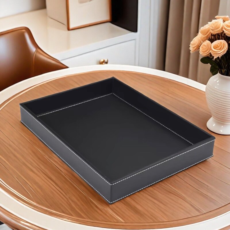 📚 酒店托盘长方形放水杯茶盘皮质会议办公桌面文件收纳盘装饰展示盘