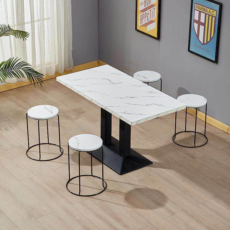 📚 小吃店餐饮商用桌子椅套装组合饭店餐厅奶茶店岩板小圆方桌