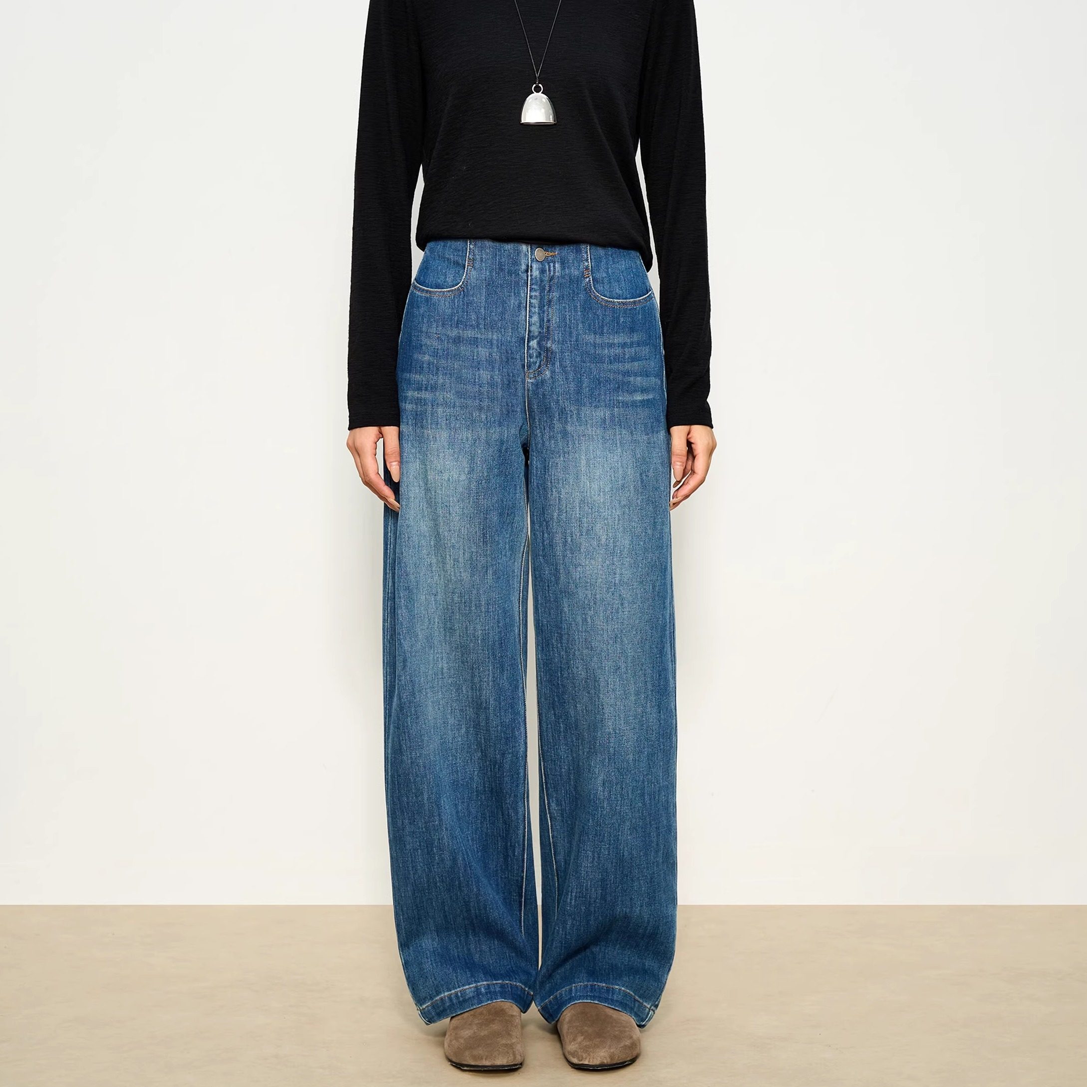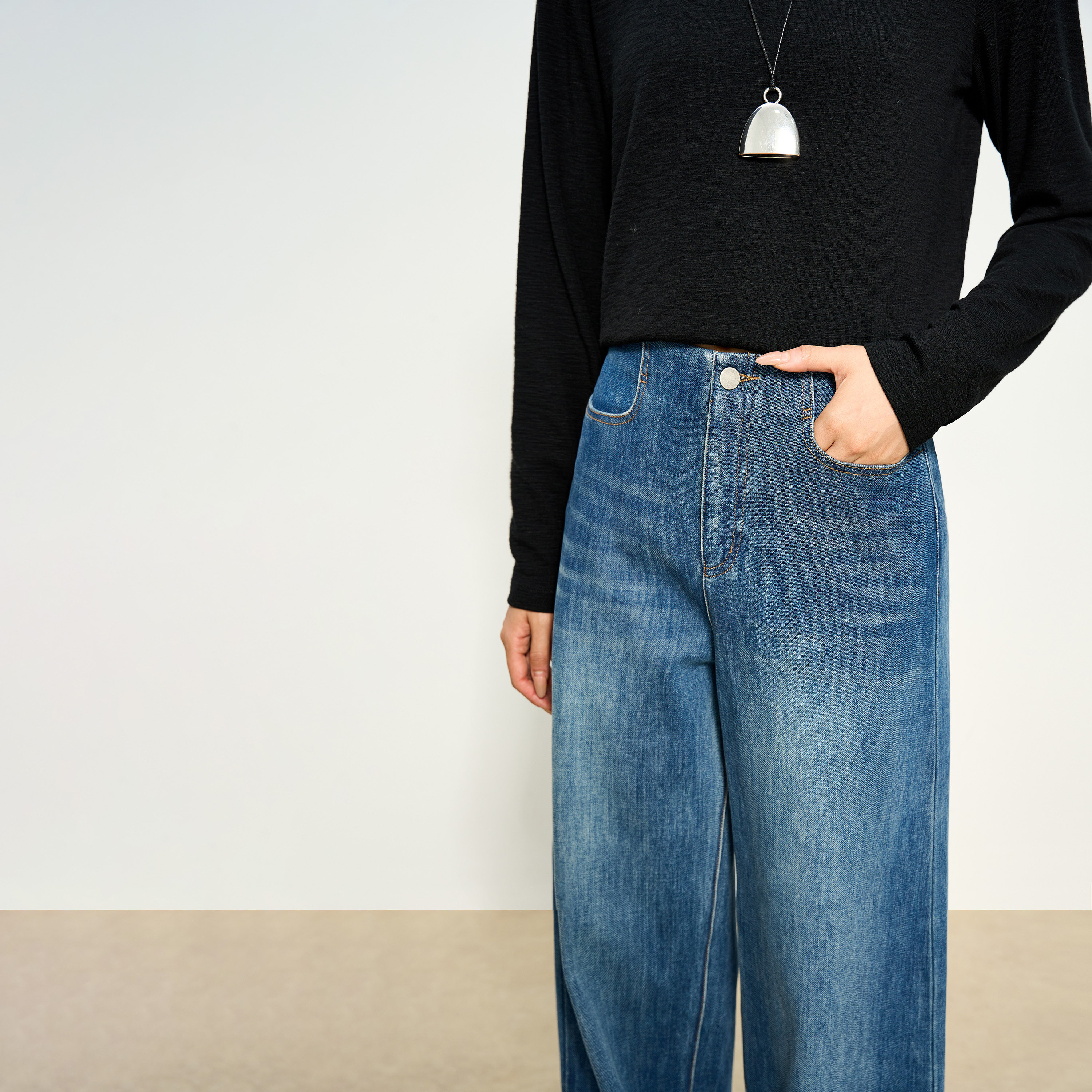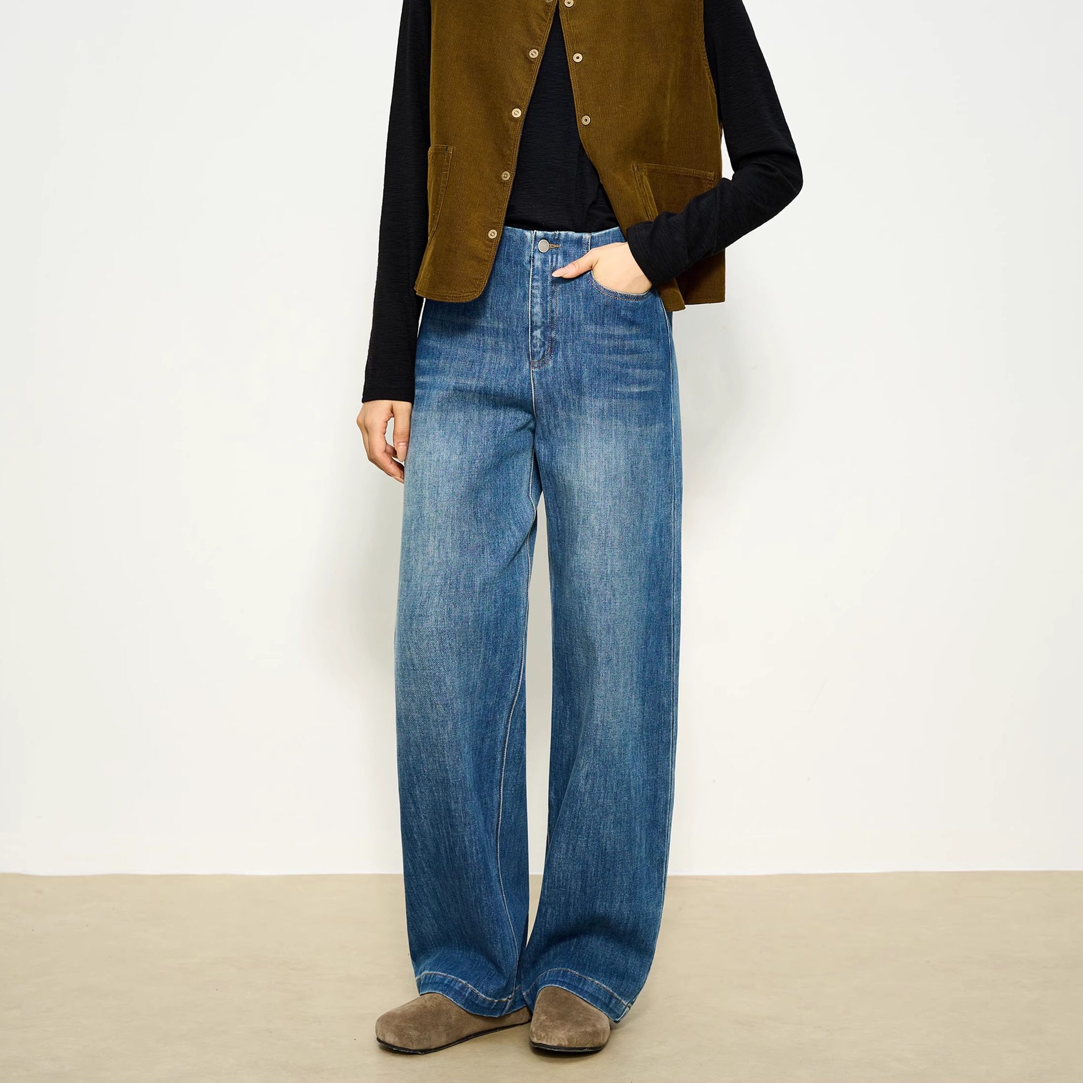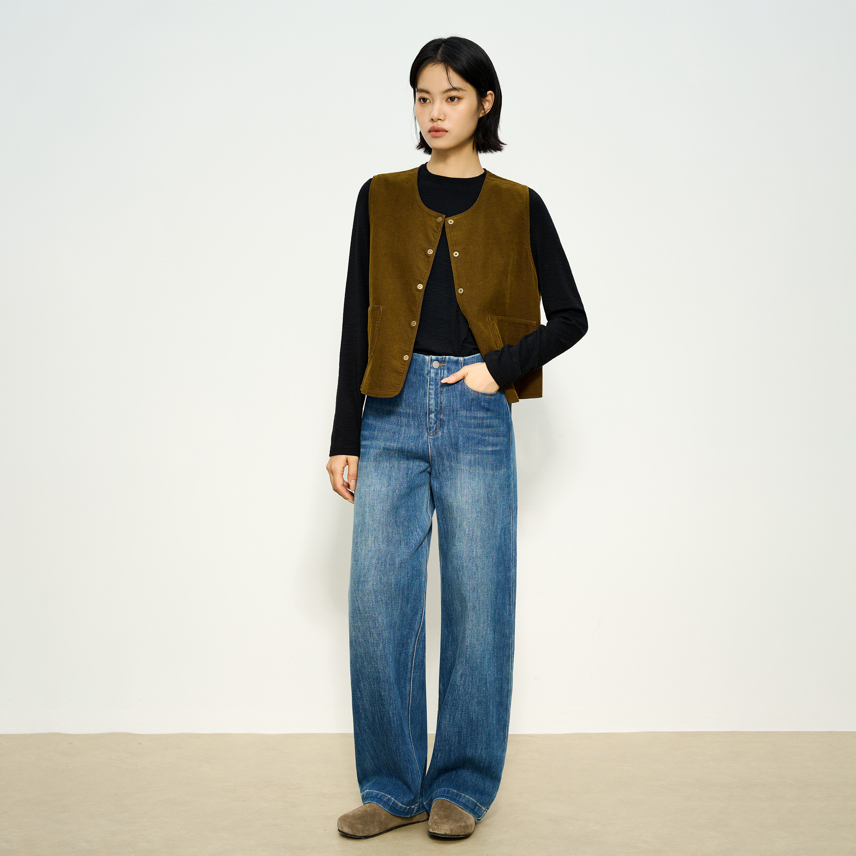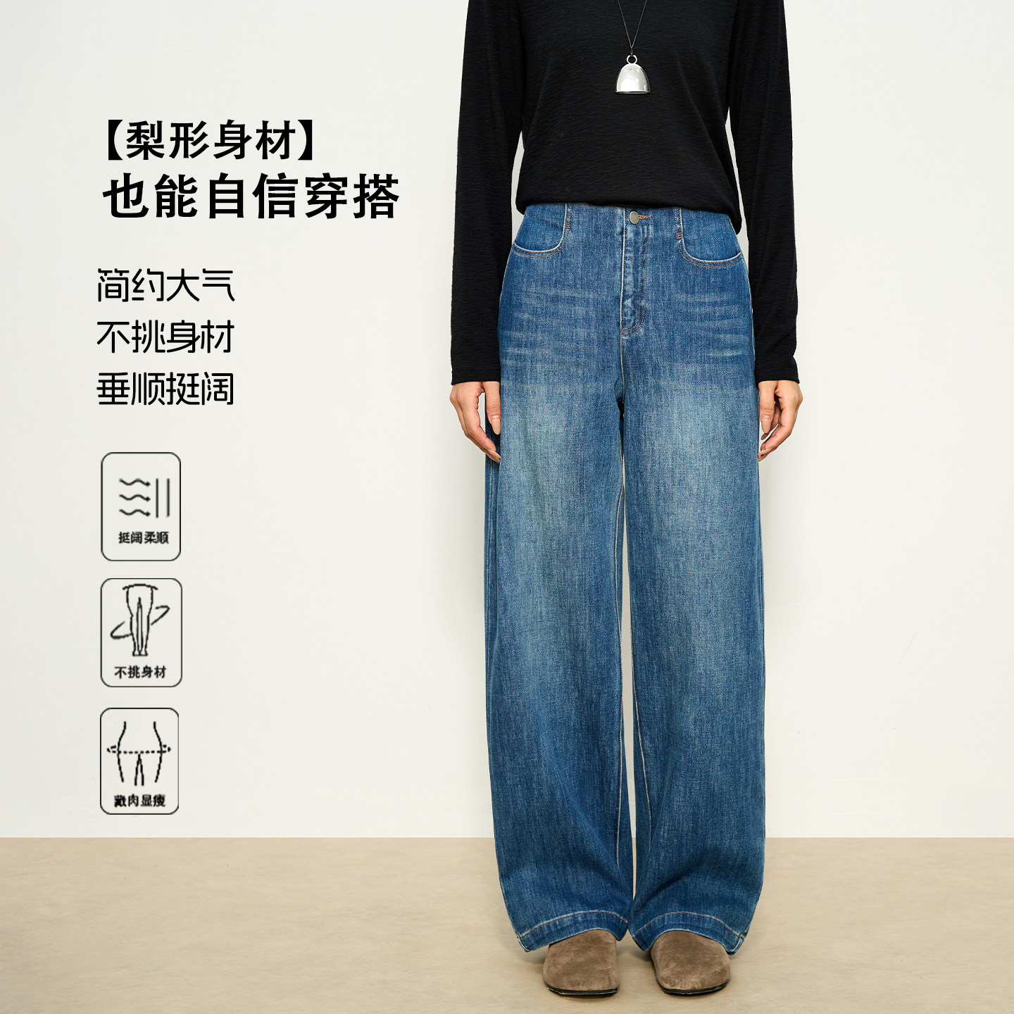 📚 张小某 竹节纹牛仔裤女秋冬2025新款美式高腰棉质拖地直筒裤N1991