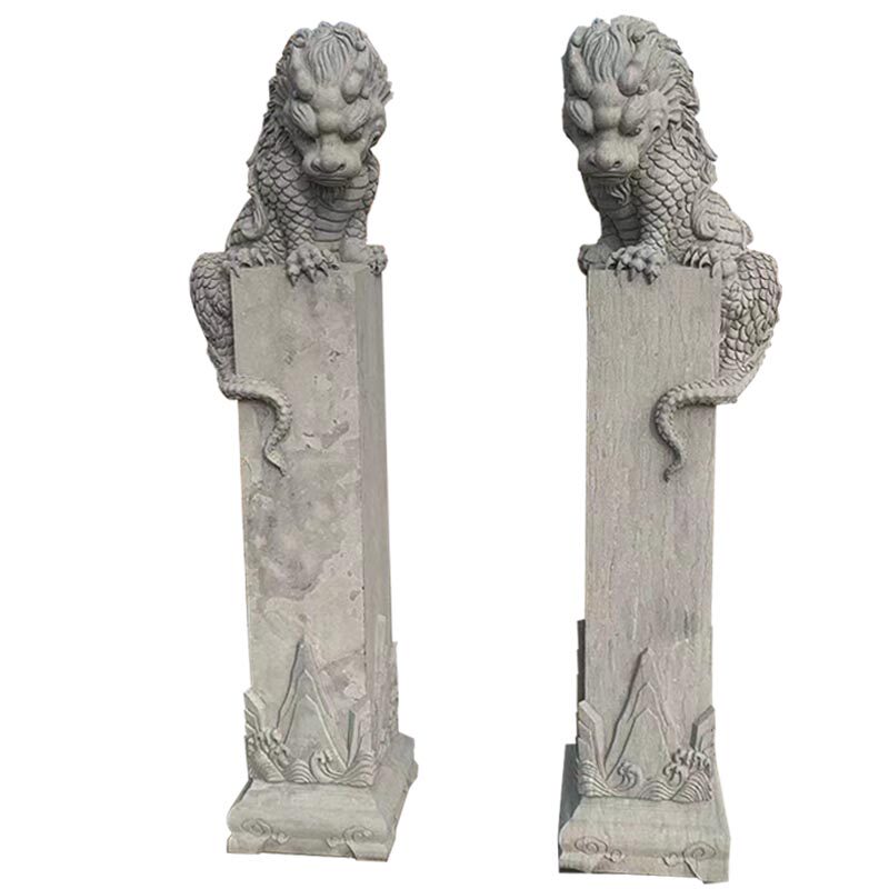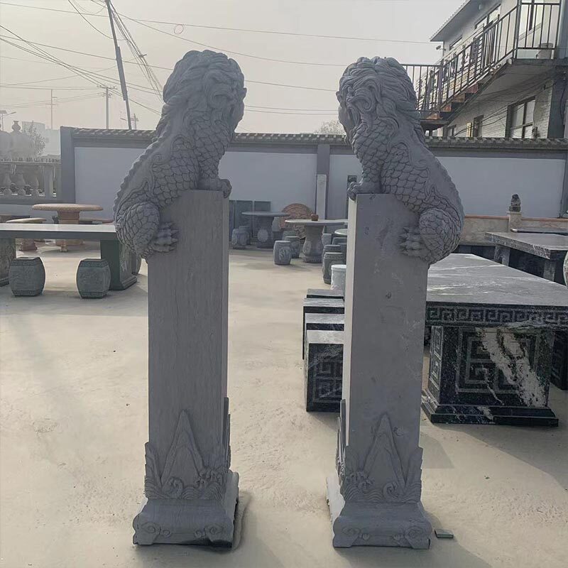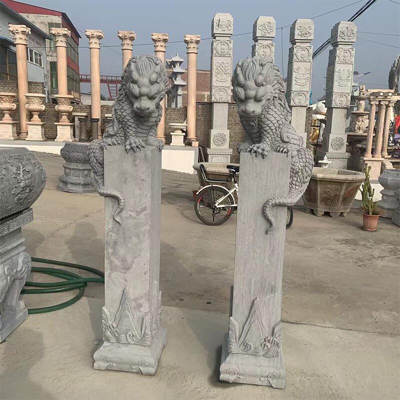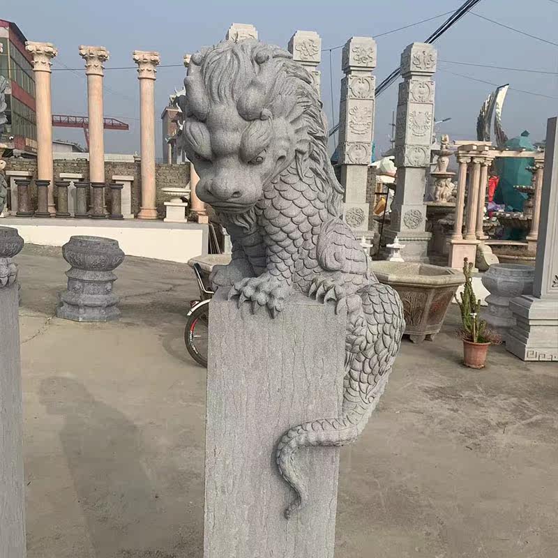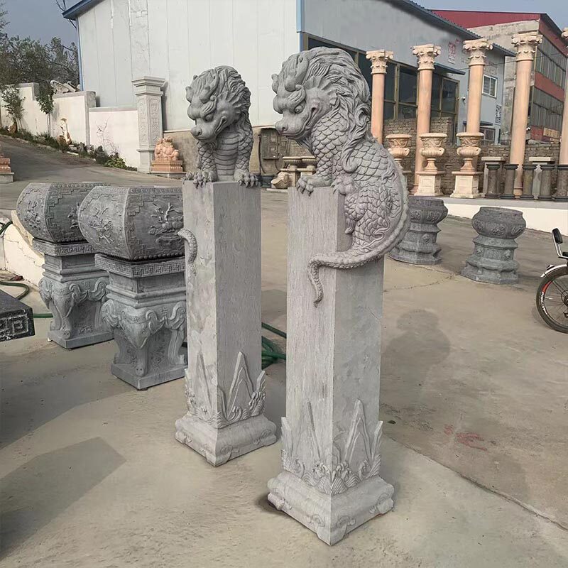 📚 石雕吸水兽麒麟盘柱花岗岩中式古建禅意会所庭四合院门口园林景观