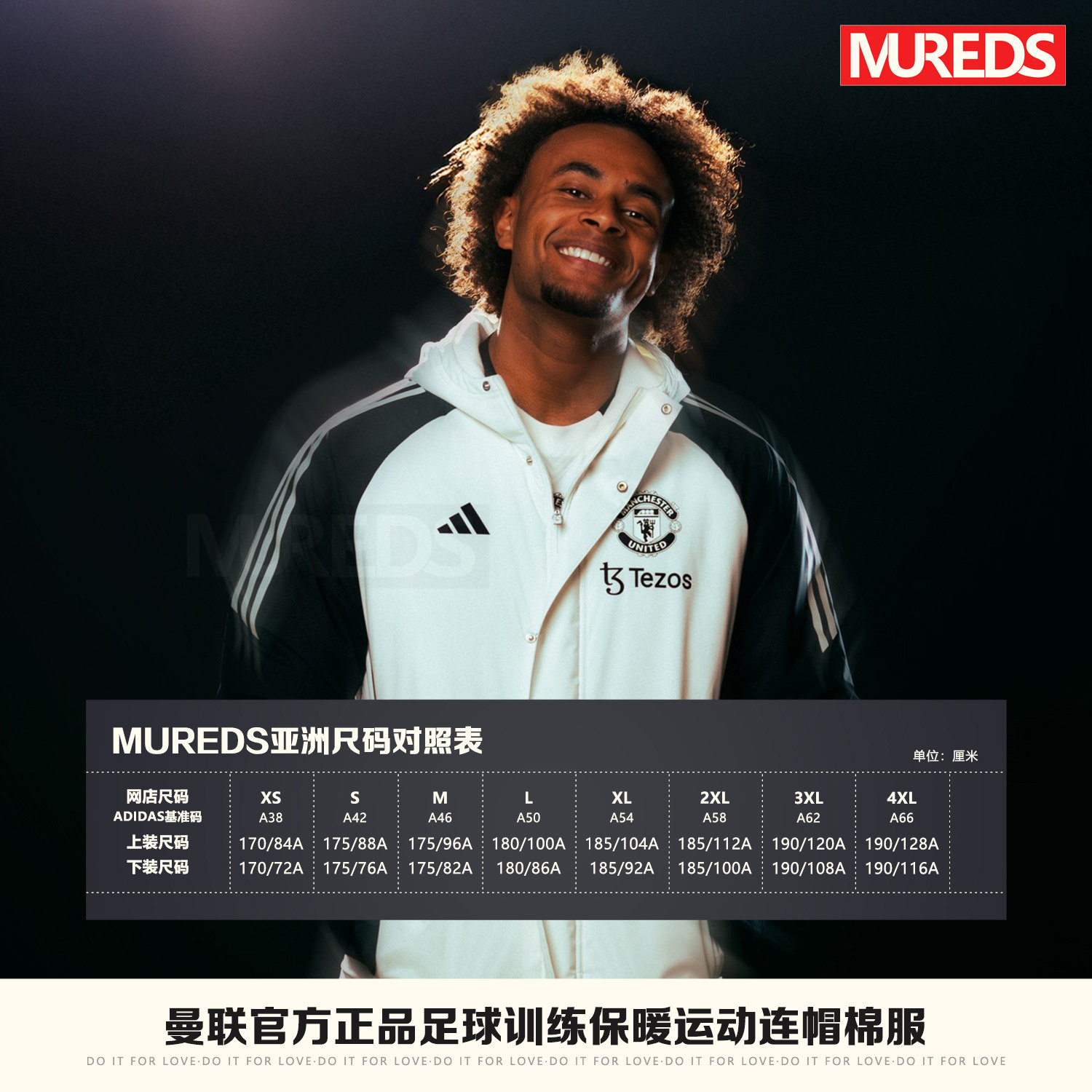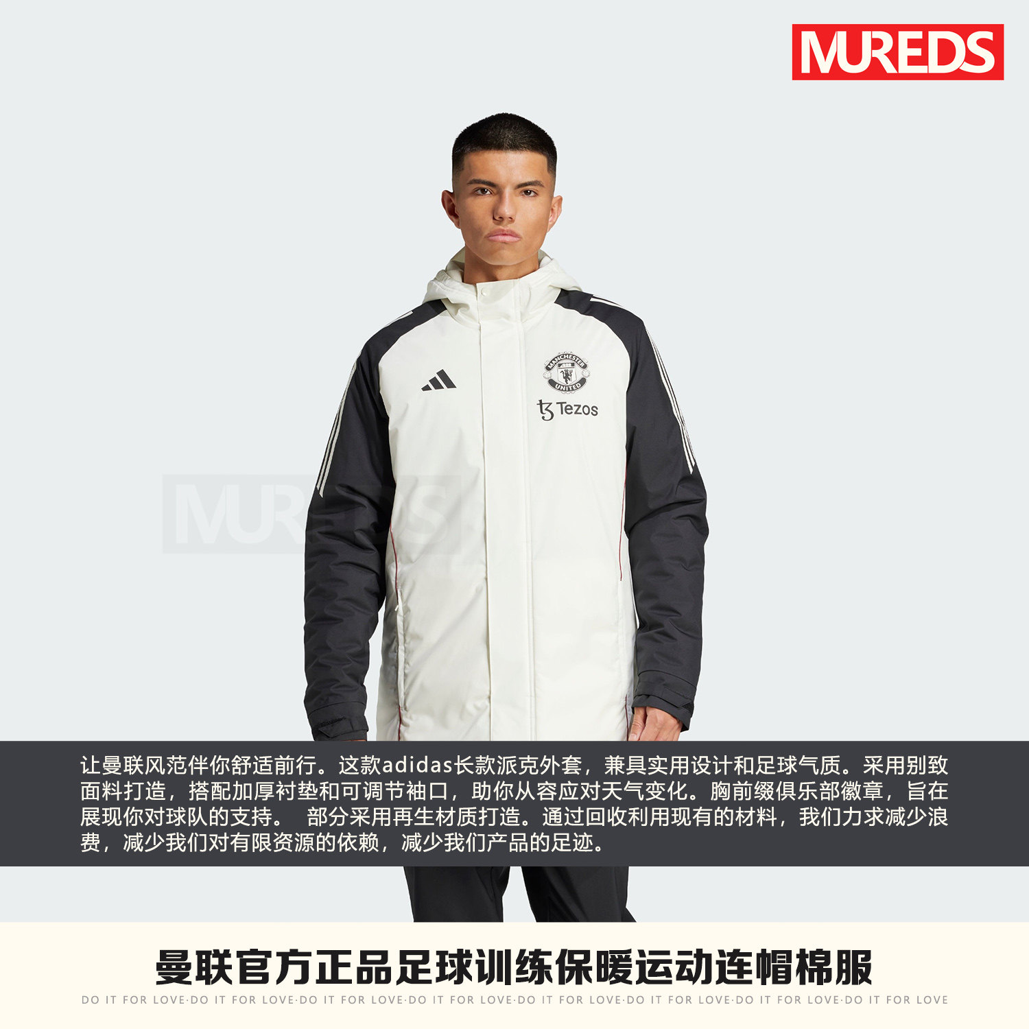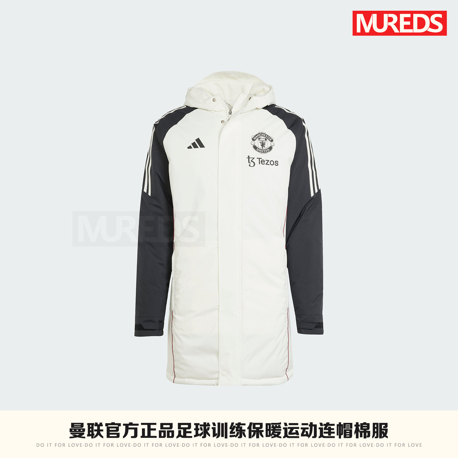 📚 曼联官方正品阿迪达斯球队同款足球训练保暖连帽棉服外套JE3724