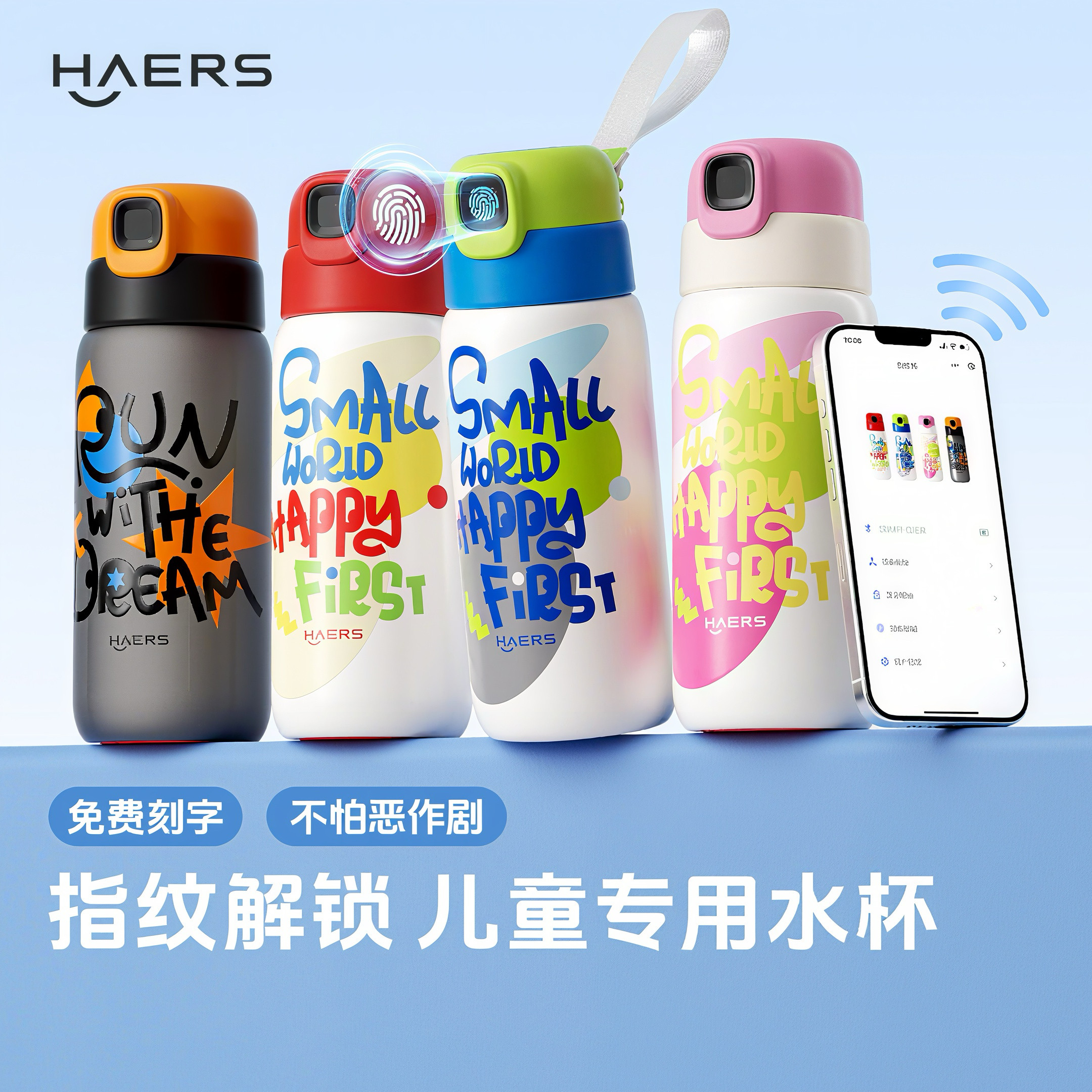 📚 哈尔斯指纹水杯保温杯儿童上学专用智能解锁密码男杯子女新年礼物