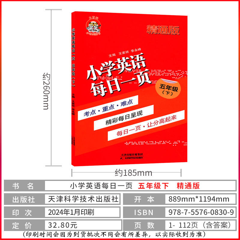 📚 小老虎图书人教精通版小学英语每日一页同步练习三四五六年级上册下册考点重点难点配套练习