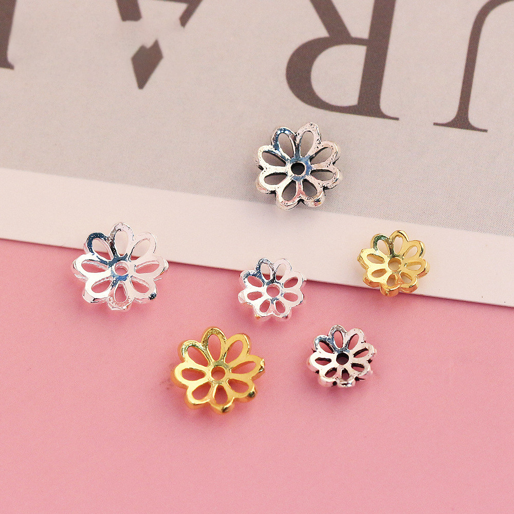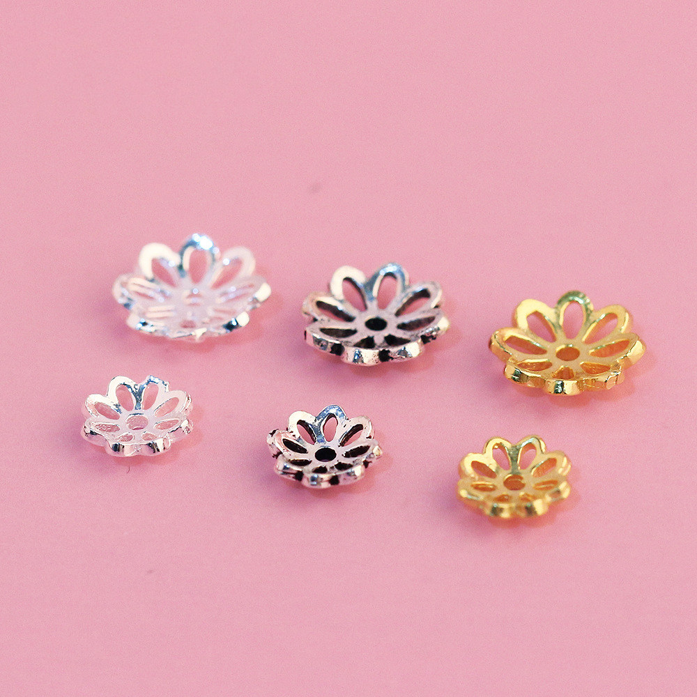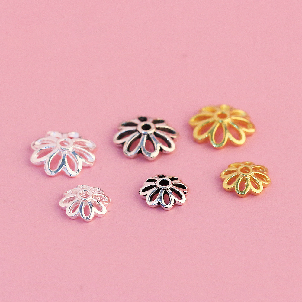 📚 S925纯银泰银配件 素银复古花朵花托花帽 串珠材料DIY水晶手链配