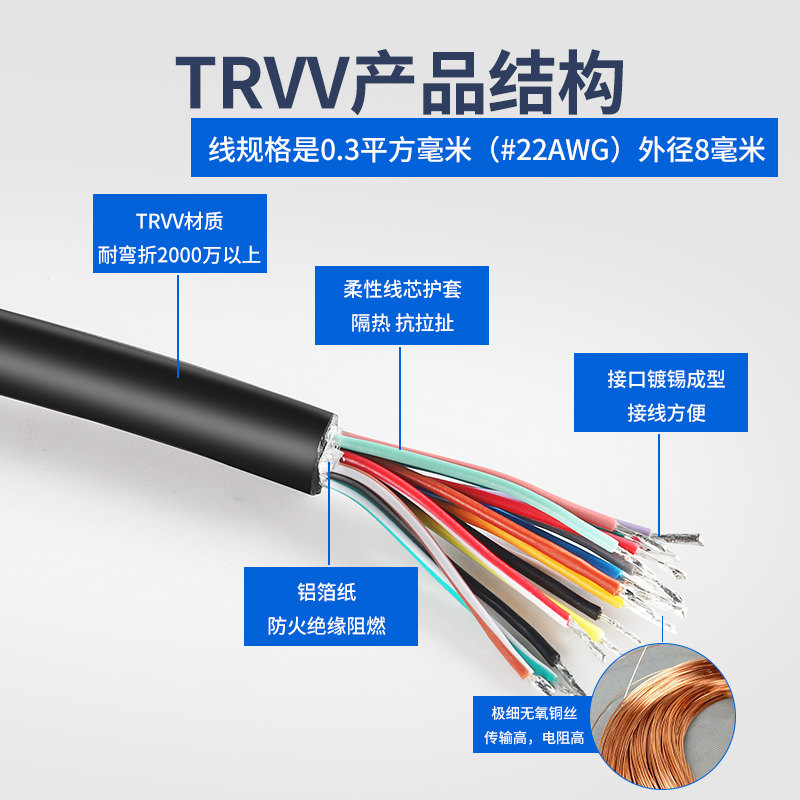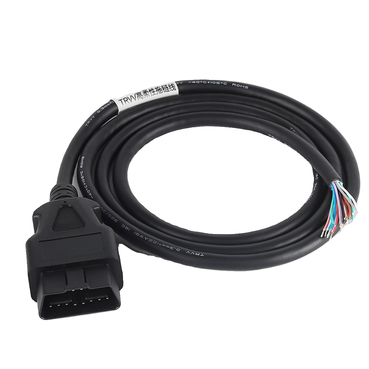 📚 TRVV柔性拖链线汽车obd线插头接口16针通用公头开口连接延长线
