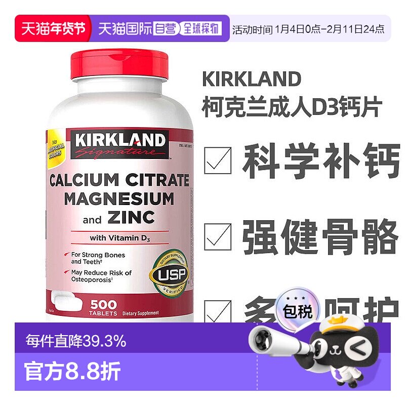 📚 美国直邮Kirkland柯克兰维生素D3钙质吸收强壮骨骼补骨胶原500粒