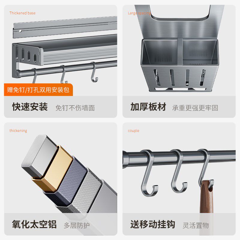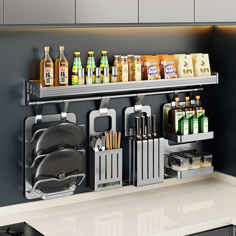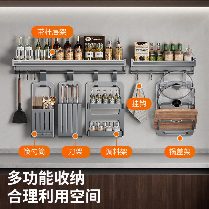 📚 厨房置物架套装壁挂式免打孔调料品收纳架子家用品大全多功能挂架