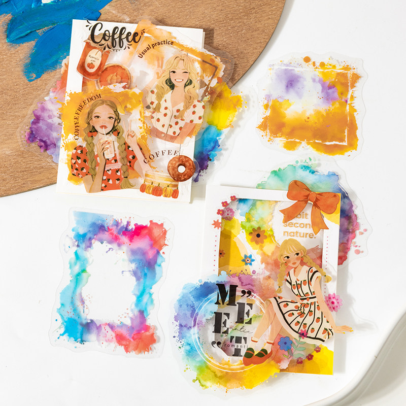 📚 晕染边际水彩晕染边框PET贴纸随意拼贴装饰素材diy打底贴画百搭
