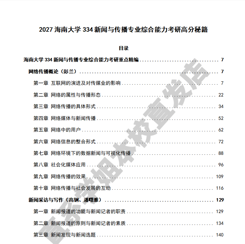 📚 2027海南大学334新闻与传播专业综合能力440新闻与传播专业基础专硕士考研真题教材资料复试辅导网课笔记考研复试辅导资料