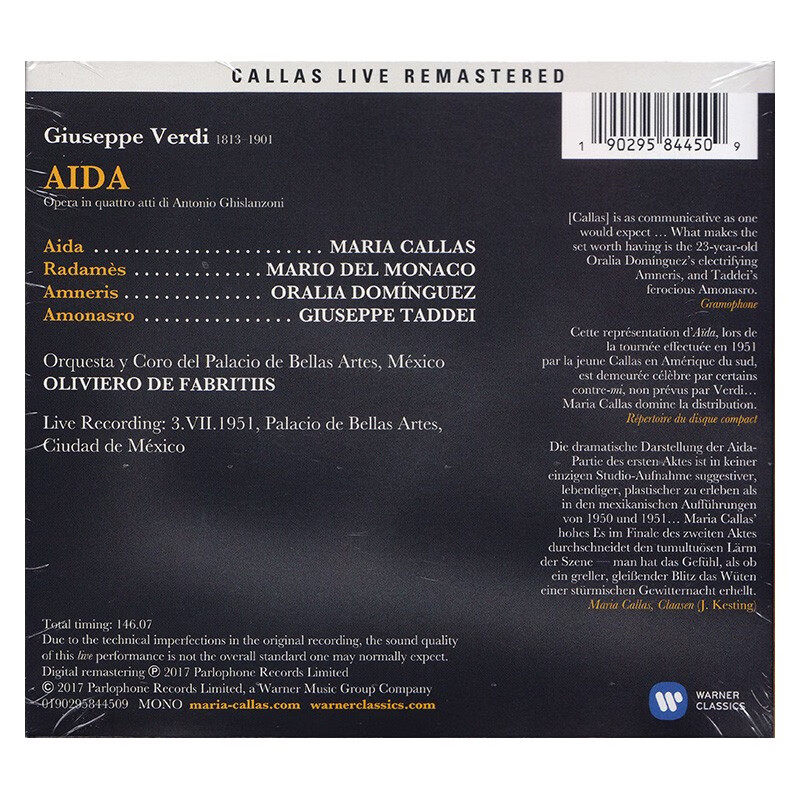 📚 【原装进口】卡拉斯 威尔第 Aida阿依达 意大利歌剧 单声道CD唱片
