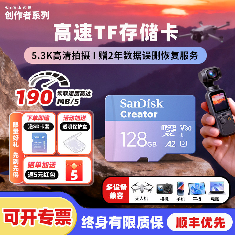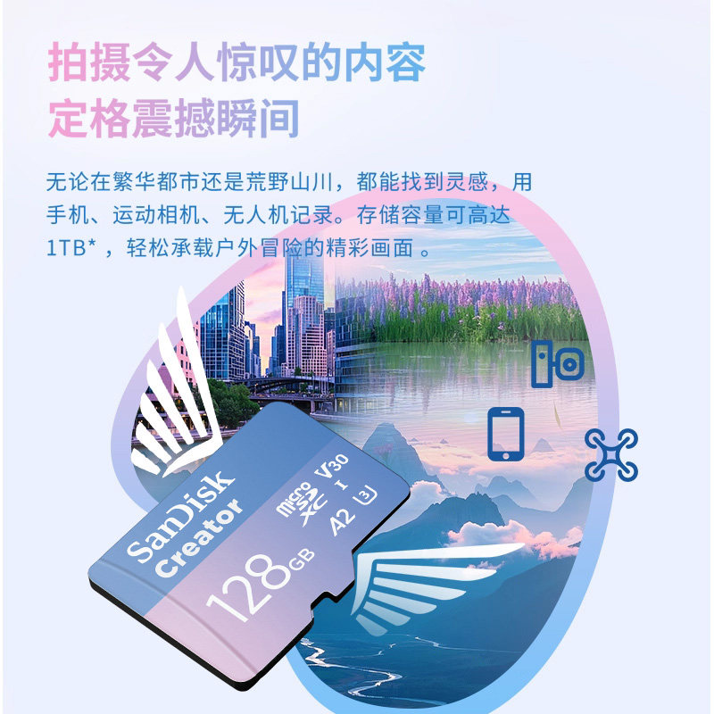 📚 闪迪创作者128g储存卡TF内存卡大疆无人相机高速监控V30 A2 U3