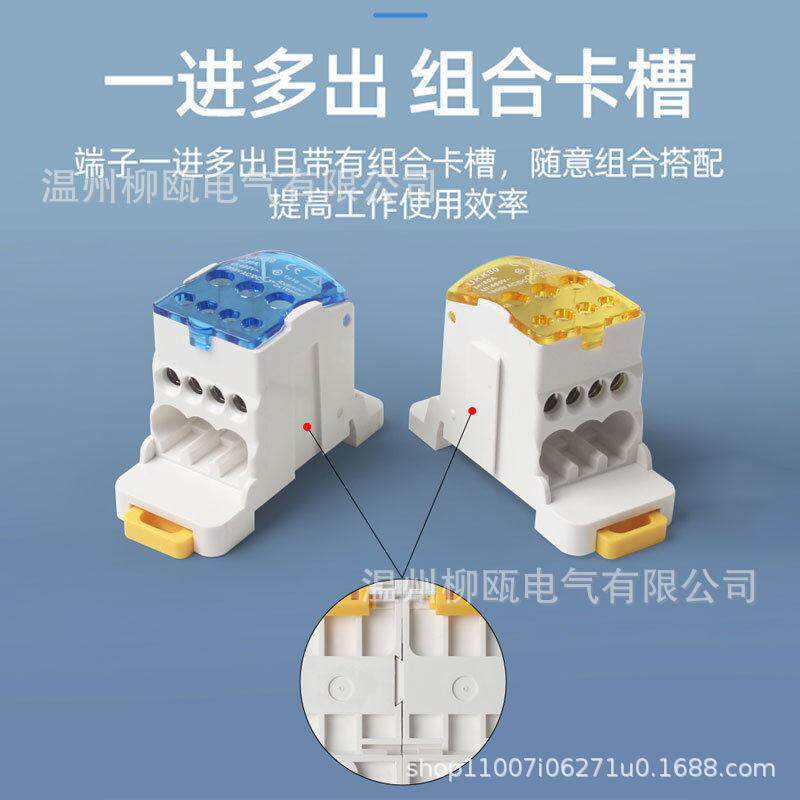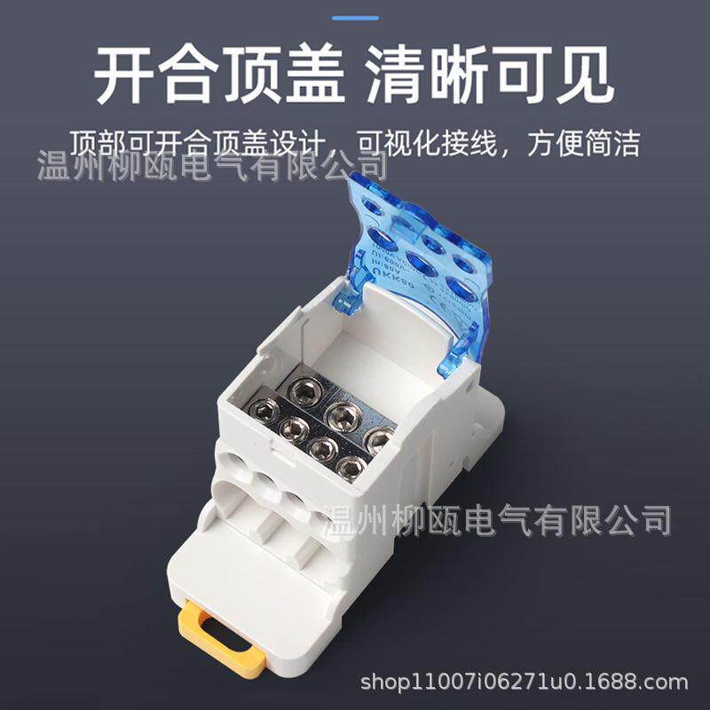 📚 UKK导轨式接线端子分线盒一进多出分支线电线连接器大电流分线器