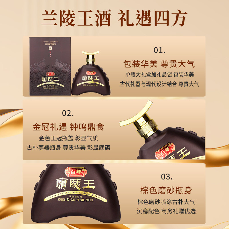 📚 兰陵 浓香型 白酒 52度 百年兰陵王 500ml*6 兰陵王酒 整箱送礼