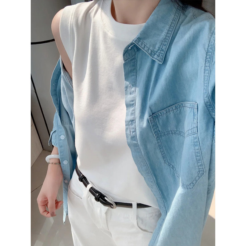 📚 白色无袖背心女夏季春秋内搭工字遮副乳纯棉外穿美式坎肩打底上衣