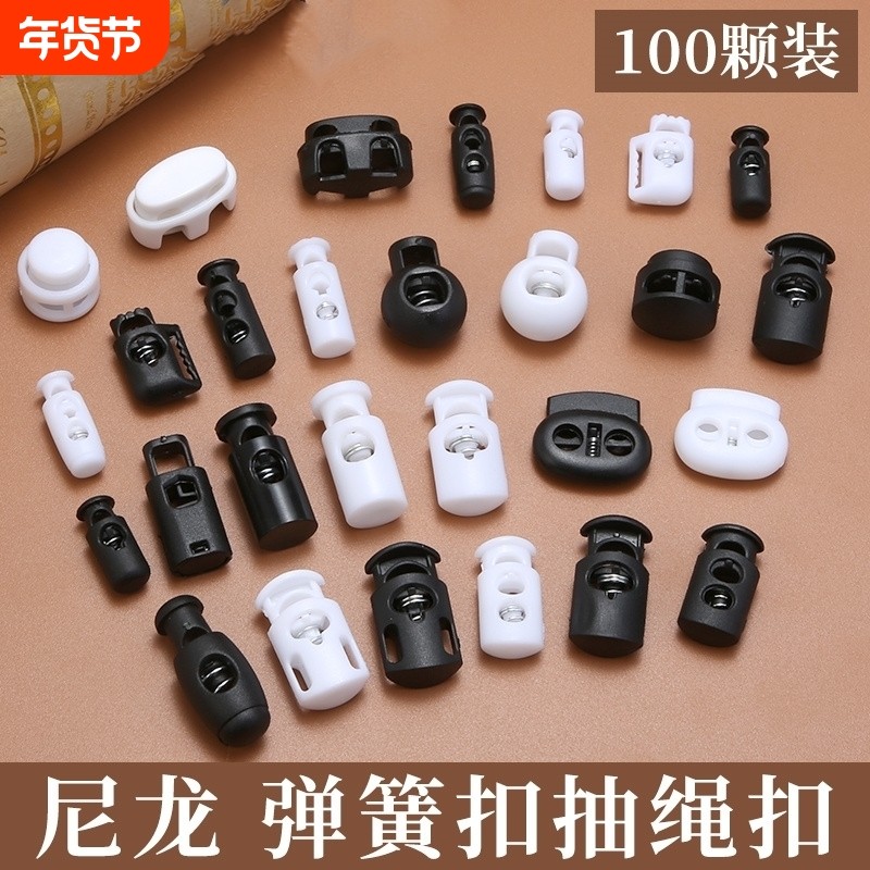 📚 纽扣吊扣绳扣锁扣卡扣双孔弹簧扣猪鼻扣松紧调节扣定绳扣diy辅料