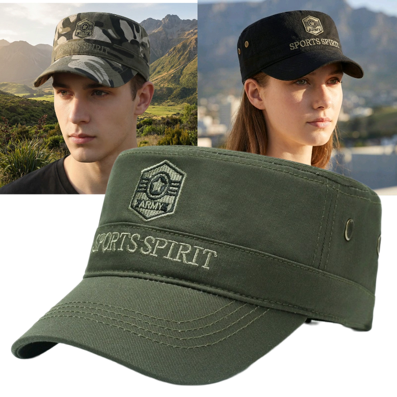 📚 新款2026男士帽子春秋天帅气防寒平顶帽军绿色户外防晒遮阳帽潮女