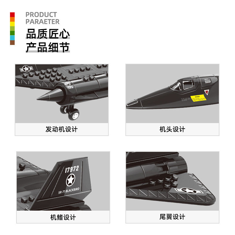 📚 飞机积木军事模型 | SR-71黑鸟侦察机战斗机酷炫颗粒积木益智玩具