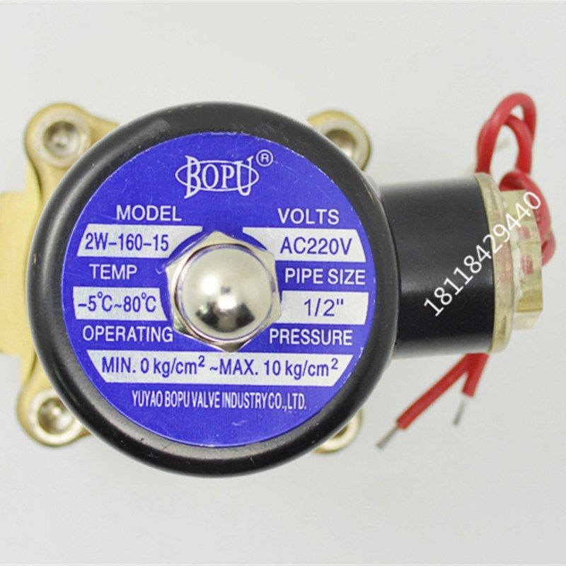 📚 BOPU博普电磁阀4分常闭DN15铜水气开关阀2W-160-15不发热2WBFR-15