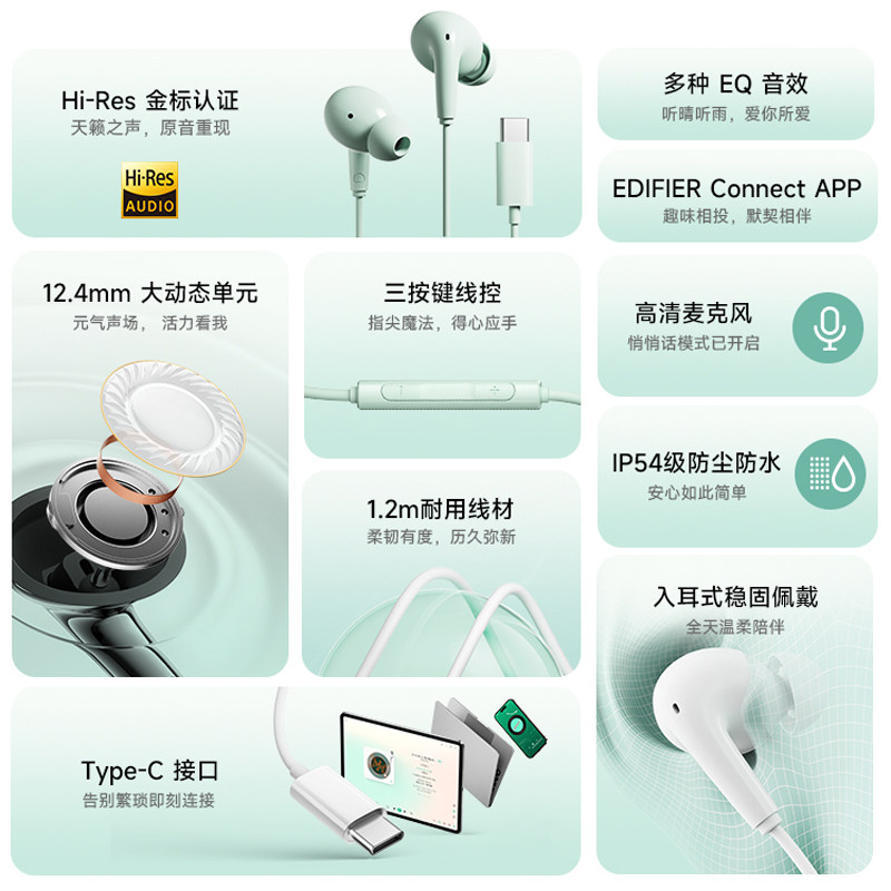 📚 漫步者H230P TYPE-C入耳式有线耳机带麦游戏高音质手机笔记本线控