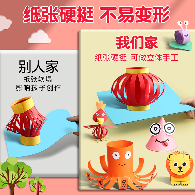 📚 得力卡纸彩色手工硬彩纸a4儿童折纸小学生a3白色硬纸幼儿园专用制作材料美术画画背景纸红色4开8开加厚软剪纸