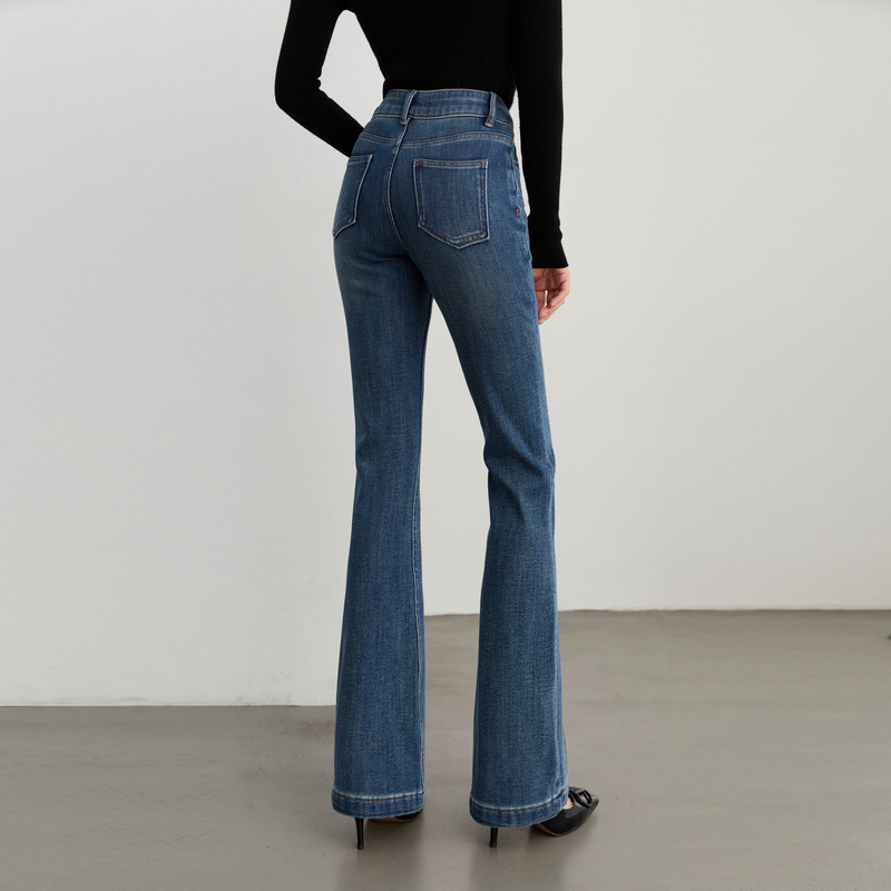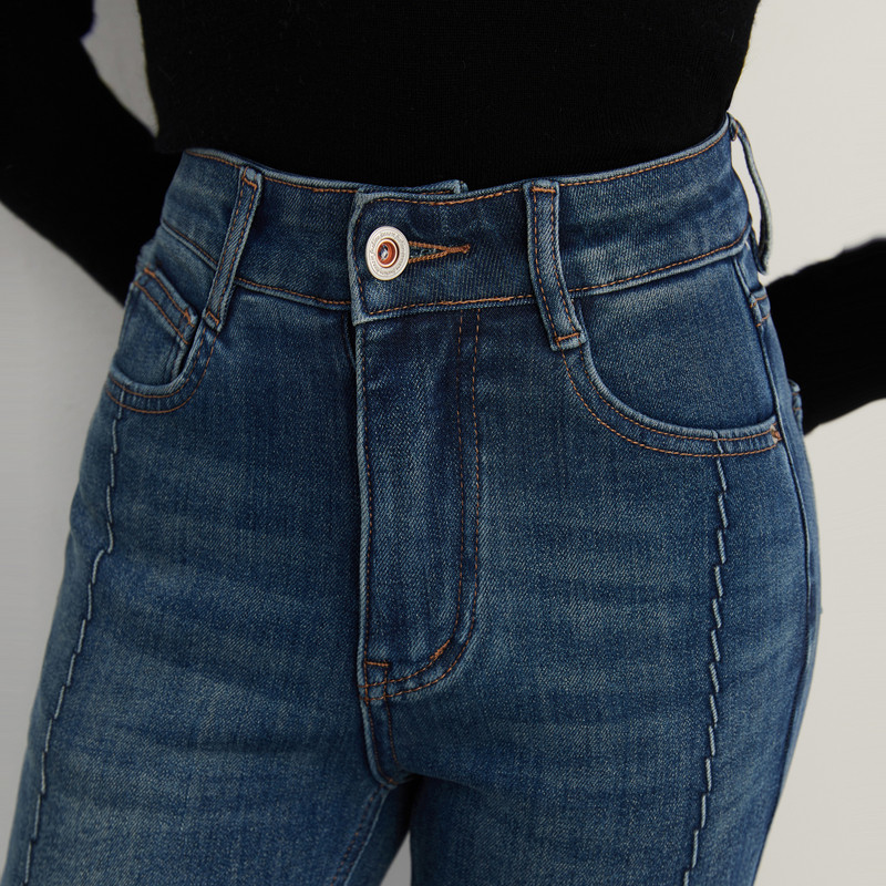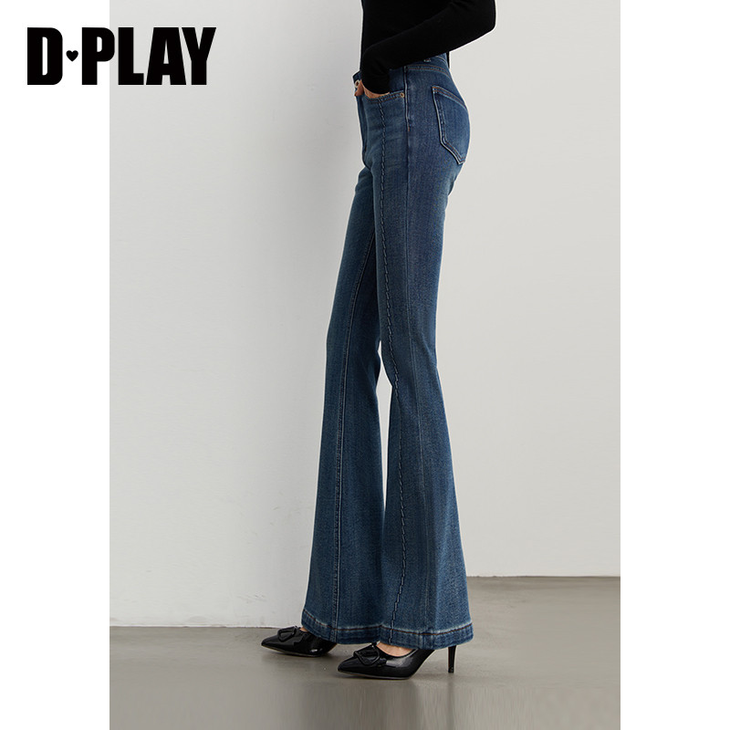 📚 DPLAY冬季新款深蓝色直筒裤流行时尚潮流长款牛仔裤女
