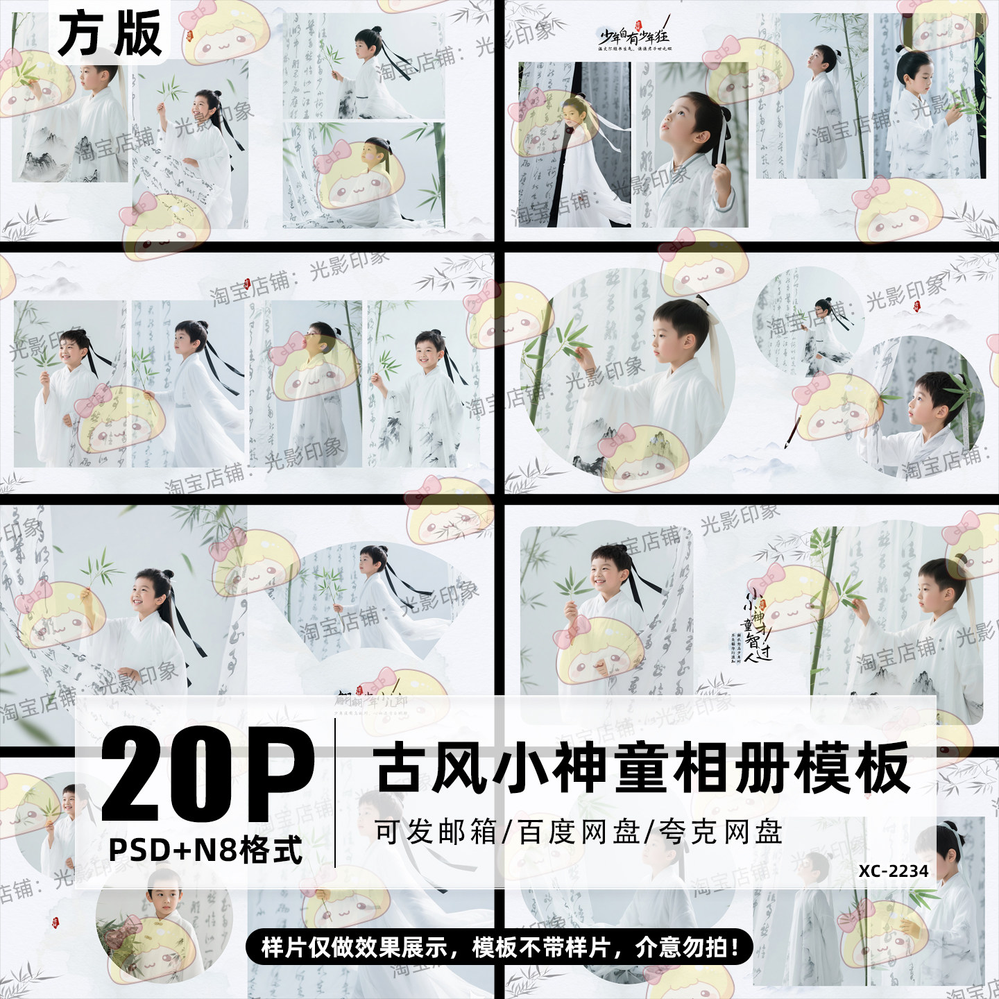 📚 古风小神童相册模板排版古装儿童宝宝艺术写真照psd素材N8方版