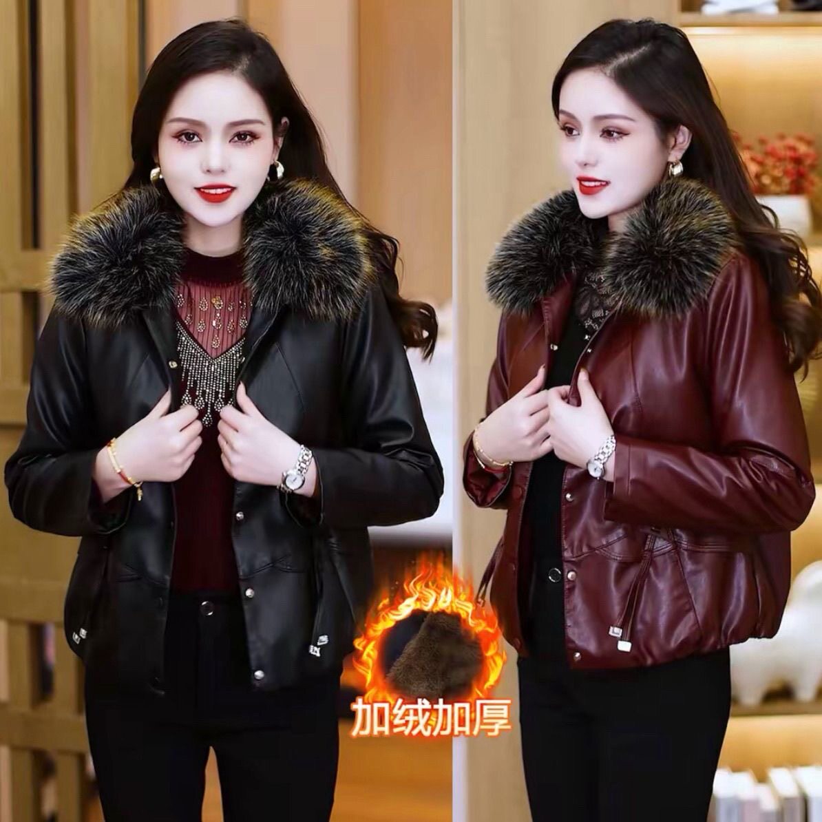 📚 【加绒带毛领款在这里拍】2025冬季短款时尚皮衣女加厚夹克带毛领